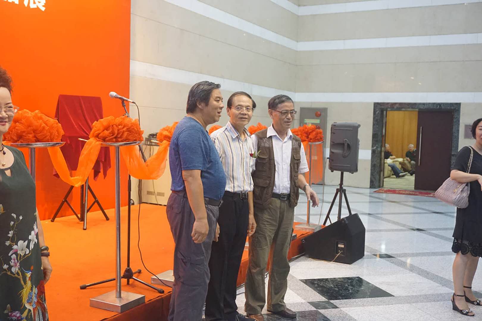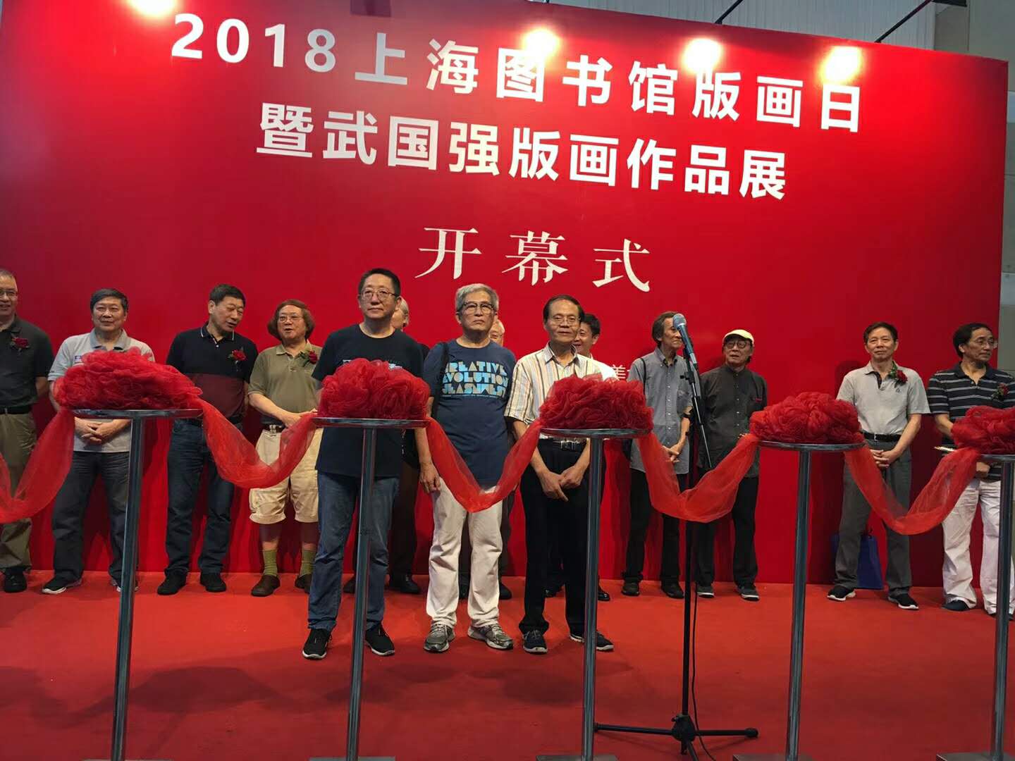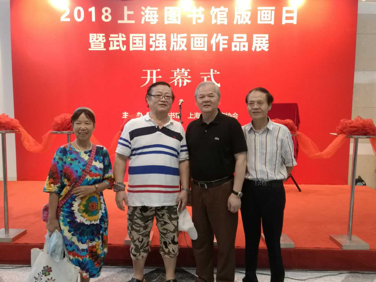 這次畫展由上海市美術(shù)家協(xié)會(huì)和上海圖書館聯(lián)合舉辦,參加開幕式嘉賓有:陳超(上海圖書館館長(zhǎng))、周德明(上海圖書館副館長(zhǎng)、中國(guó)文化名人手稿館館長(zhǎng))、陳琪(上海市美術(shù)家協(xié)會(huì)副主席、秘書長(zhǎng))、洪鈕一(上海炎黃書畫院院長(zhǎng))、王劼音(上海市美術(shù)家協(xié)會(huì)顧問)、鄭辛遙(上海市美術(shù)家協(xié)會(huì)副主席)、盧治平(上海市美術(shù)家協(xié)會(huì)版畫藝術(shù)委員會(huì)主任)、張森(上海市書法家協(xié)會(huì)顧問)、張培礎(chǔ)(上海市美術(shù)家協(xié)會(huì)中國(guó)畫藝術(shù)委員會(huì)副主任)、肖谷(上海油畫雕塑院院長(zhǎng))、武國(guó)強(qiáng)(上海市美術(shù)家協(xié)會(huì)版畫藝術(shù)委員會(huì)委員、上海市美術(shù)家協(xié)會(huì)創(chuàng)作沙龍主持)、王立翔(上海書畫出版社社長(zhǎng))、邵黎陽(yáng)(中國(guó)藏書票協(xié)會(huì)副會(huì)長(zhǎng))、沈有福(上海美術(shù)家協(xié)會(huì)版畫工作委員會(huì)秘書長(zhǎng)、上海美術(shù)家協(xié)會(huì)版畫藝術(shù)委員會(huì)委員)、王成城(上海市美術(shù)家協(xié)會(huì)版畫藝術(shù)委員會(huì)委員)、沈雪江(上海市美術(shù)家協(xié)會(huì)版畫藝術(shù)委員會(huì)委員、上海市美術(shù)家協(xié)會(huì)理事)、丁設(shè)(上海市美術(shù)家協(xié)會(huì)副秘書長(zhǎng))、錢一星(上海市設(shè)計(jì)家協(xié)會(huì)副秘書長(zhǎng)、上海市美術(shù)家協(xié)會(huì)創(chuàng)作展覽部主任)、李磊(上海市美術(shù)家協(xié)會(huì)學(xué)術(shù)理論部主任)、徐龍寶(上海市美術(shù)家協(xié)會(huì)版畫藝術(shù)委員會(huì)副主任)。