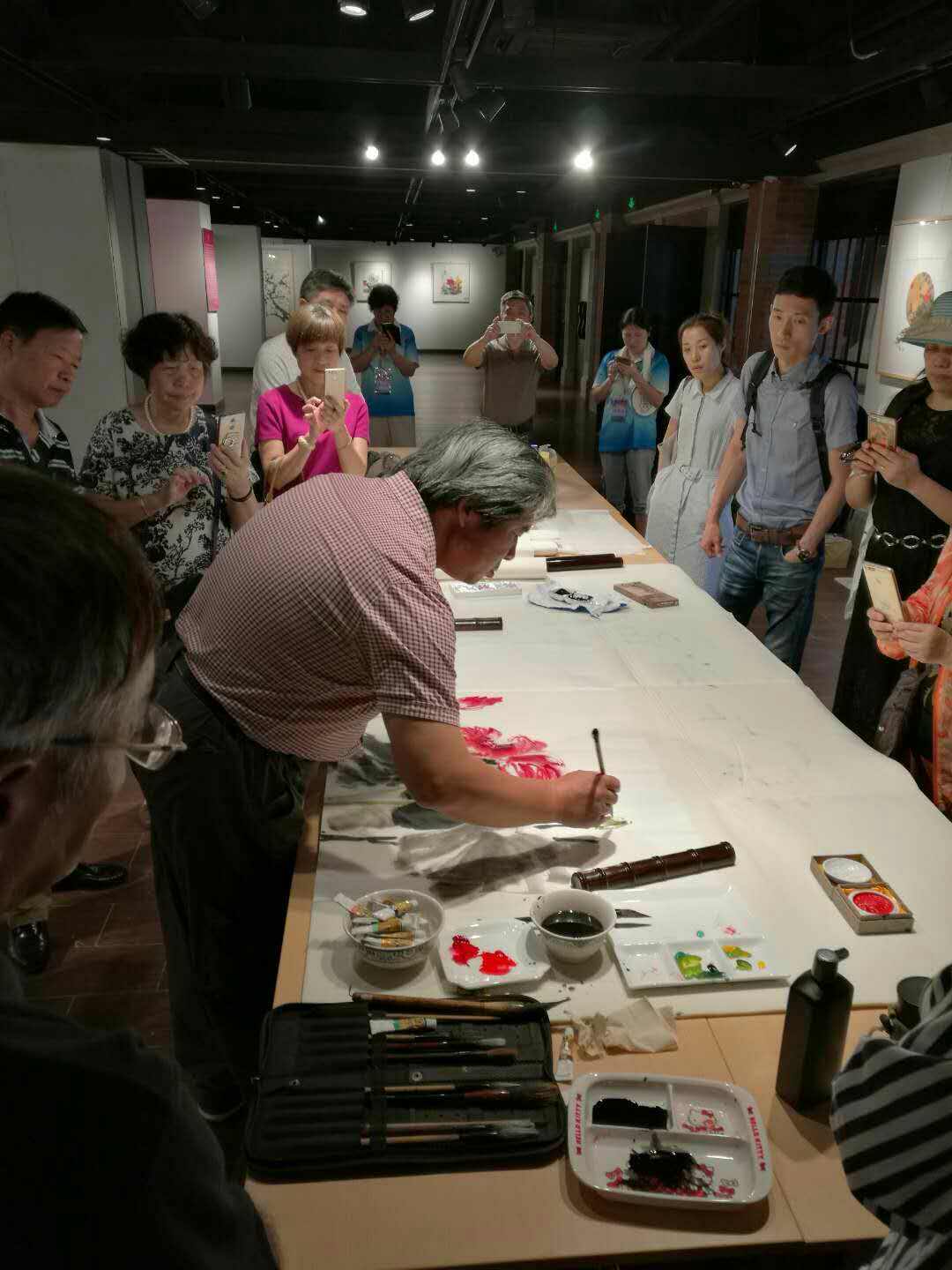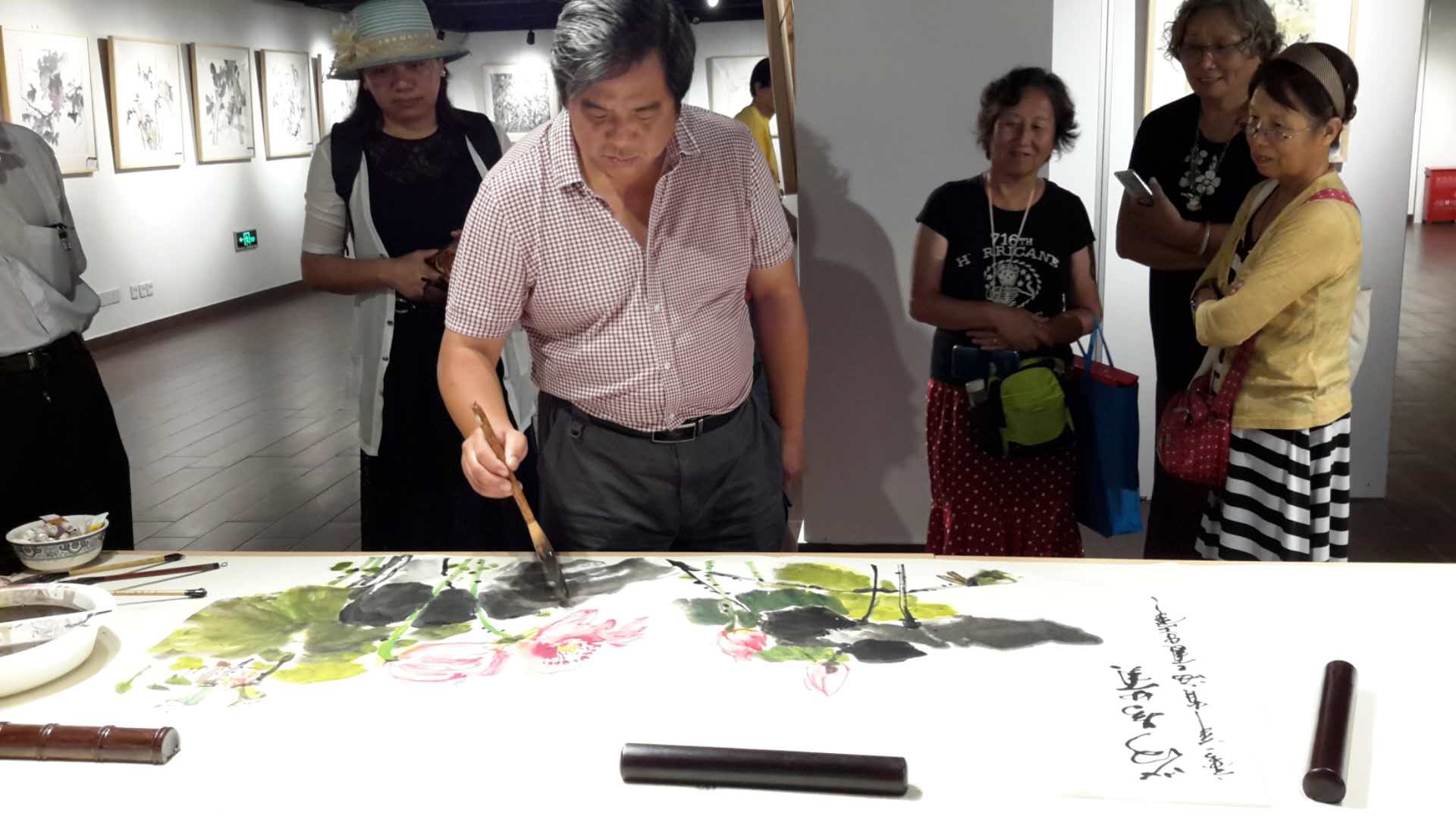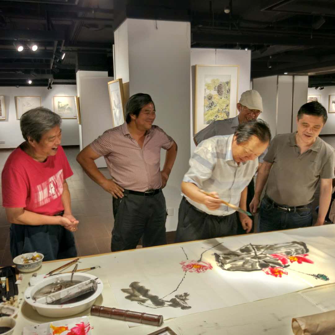 前來參加交流活動的還有虹口區美協主席余仁杰、青浦區美協副主席陳大健、非遺傳人英自海、水彩畫家胡海南、翟蘭平、胡愛倫、謝震賢、邵文海、攝影家胡亞男,以及書畫愛好者一起參加了筆會和藝術交流。 著名畫家楊正新老師正在創作四尺整張荷花圖,右起余仁杰、孫忠民、夏建峰和陳大健 畫家夏建峰老師首先開筆,創作四尺整張荷花圖。 書法家孫忠民老師 藝術網記者石波報道 上一條:《花鳥畫沙龍年展》紀念改革開放四十周年《春華秋實》——2018上海市美術家協會中國畫花鳥畫藝術沙龍年展【中國美術家書法家藝術網】快訊 下一條:【中國美術家書法家藝術網】訊,“上海美協花鳥畫沙龍年度展”昨天下午三點鐘在上海海派文化中心隆重開幕