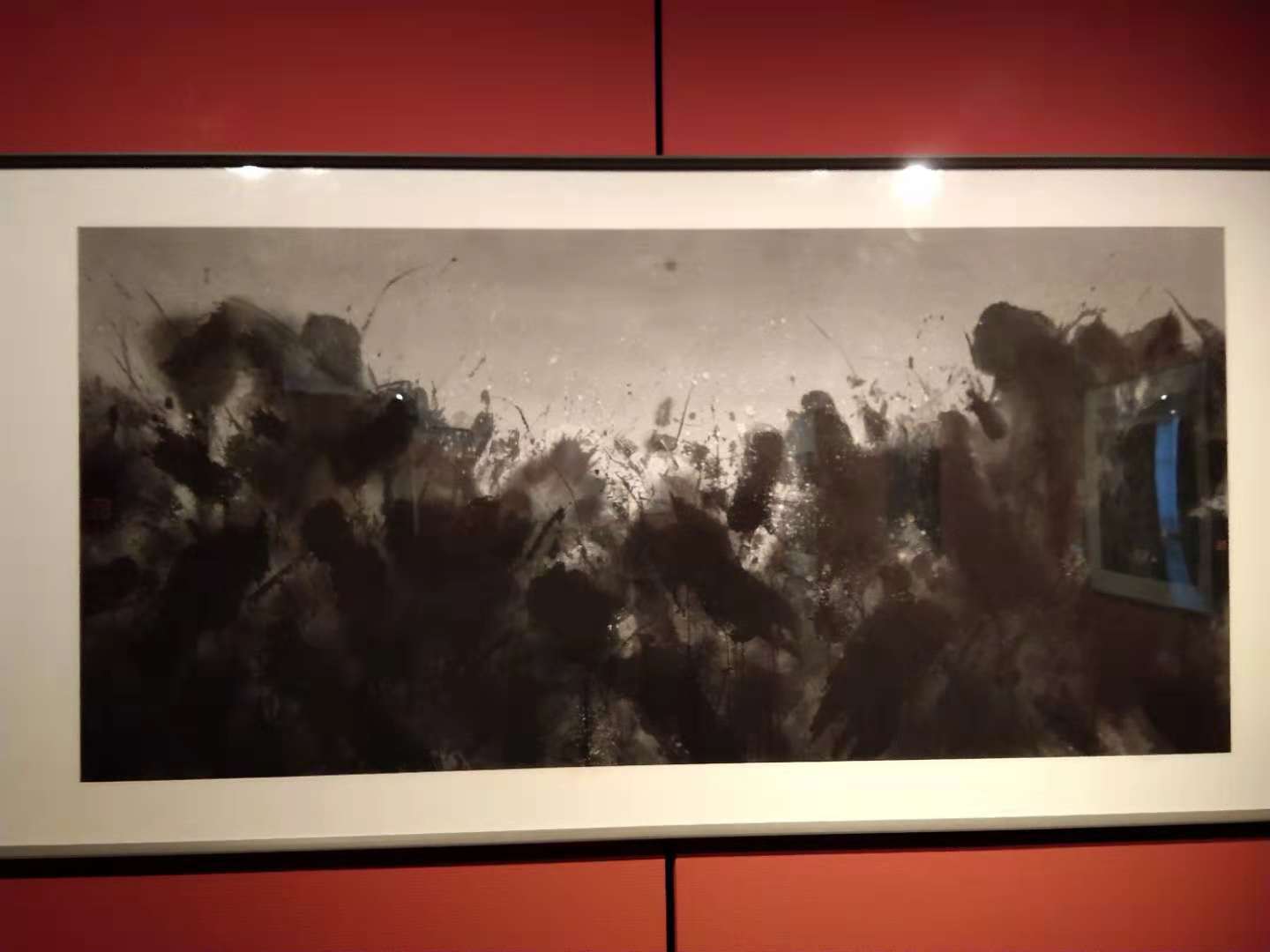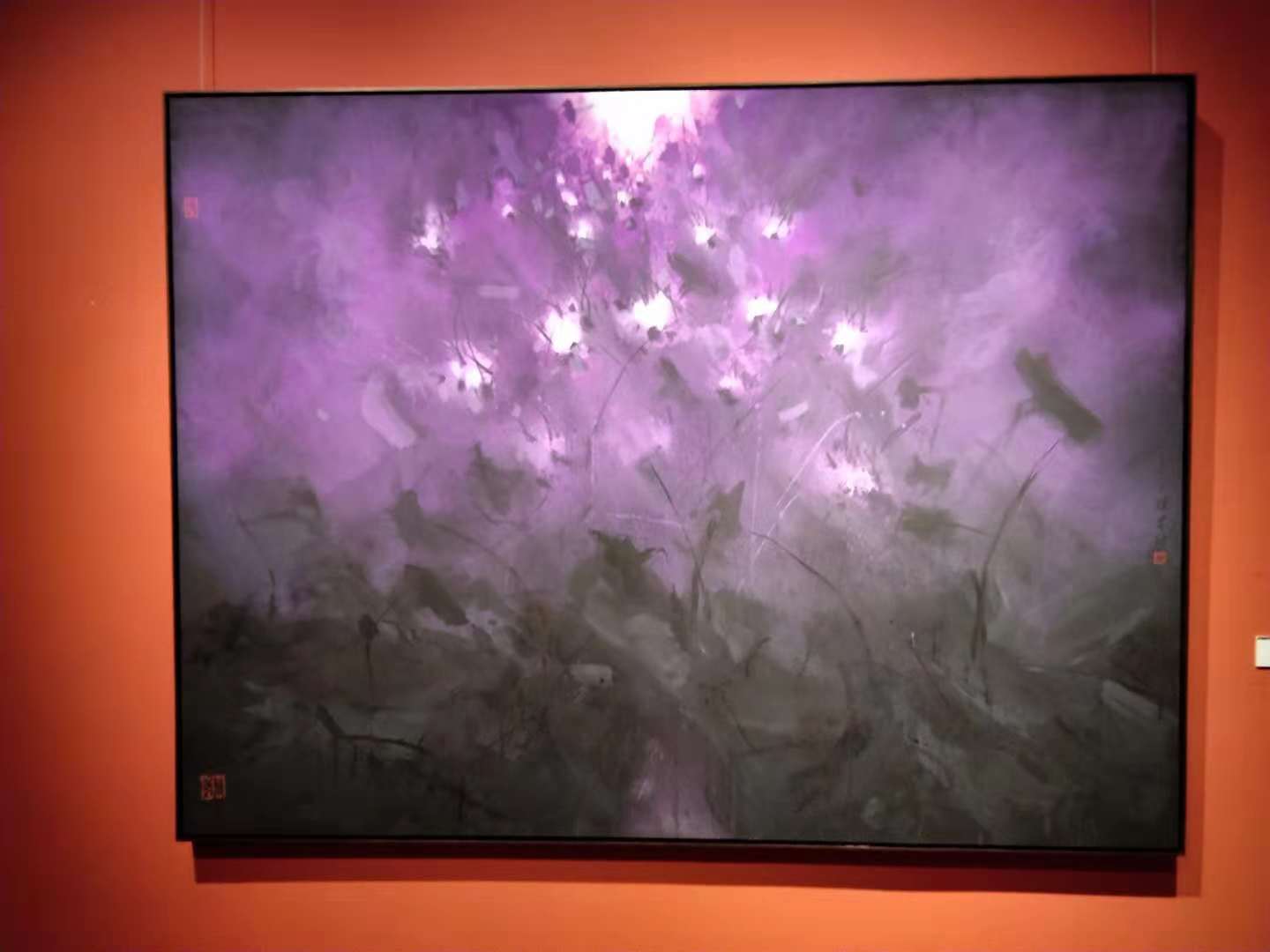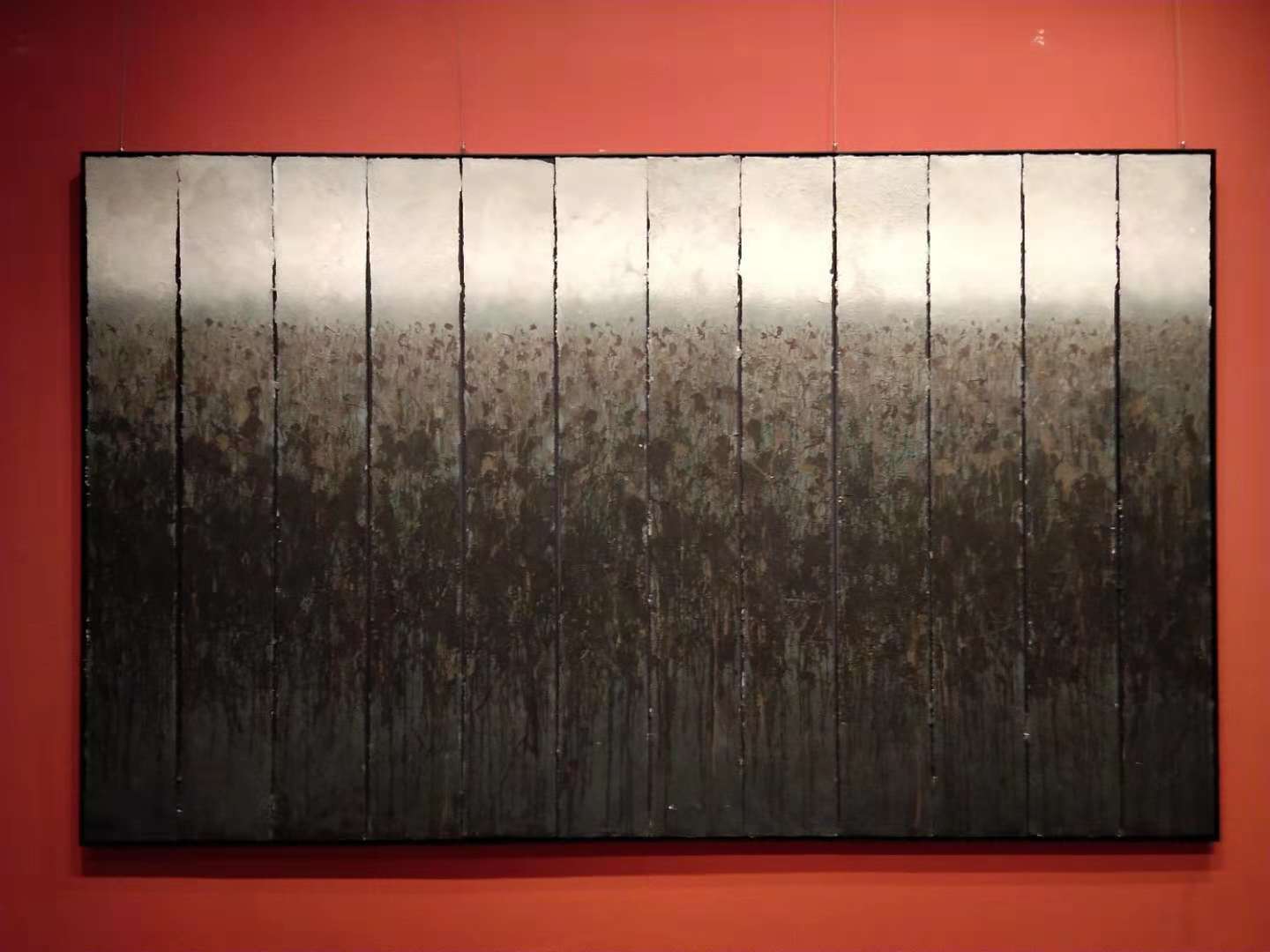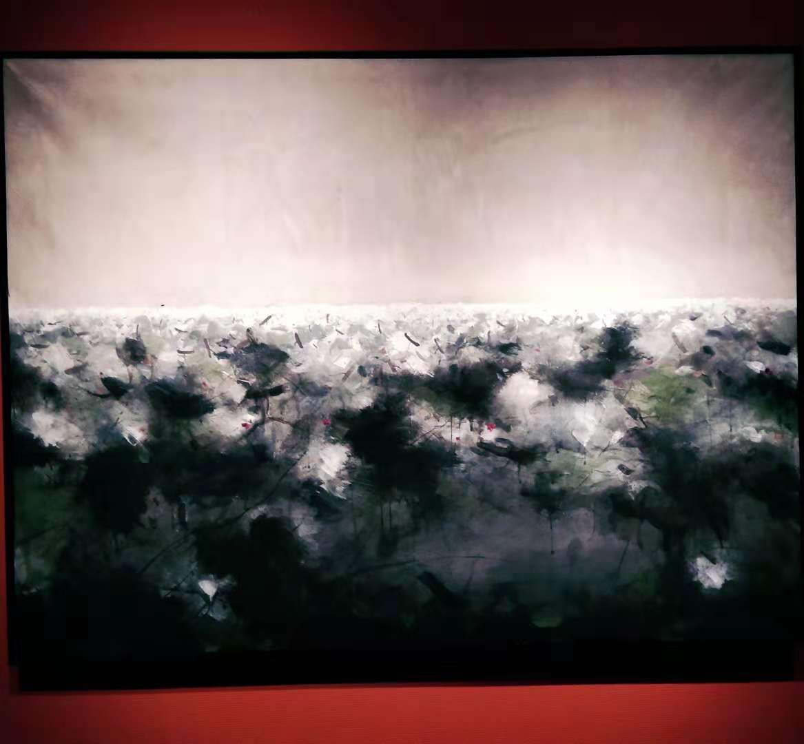 電梯上至二樓,走進展廳,一下子給人一種寧靜的視覺沖擊,畫靜靜地掛在墻上,觀眾也是靜靜地的看,輕輕的腳步聲也怕把一幅幅畫吵醒,春濤的畫就是這樣,作品里放進了許多現代元素,他的畫是中國的,他的作品又是國際的。