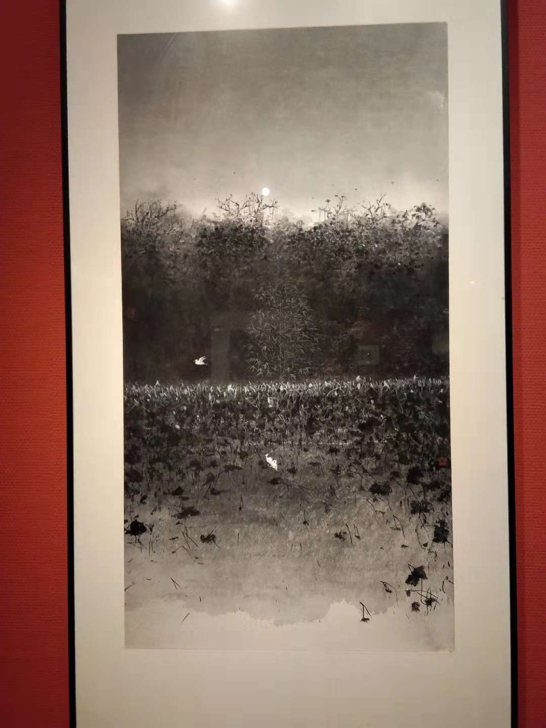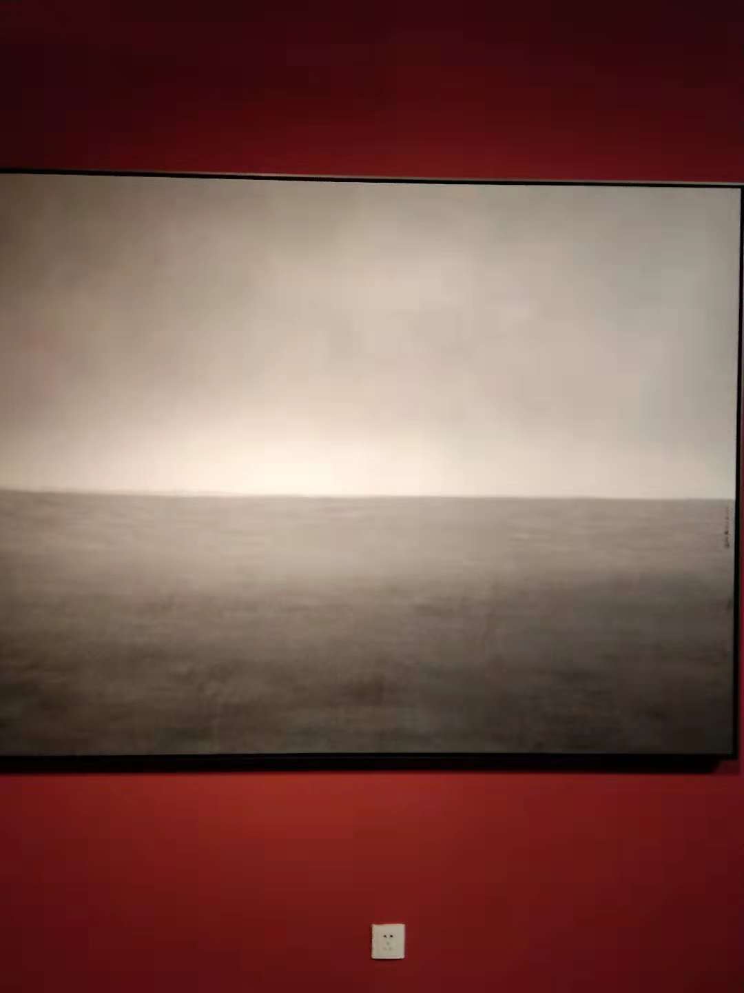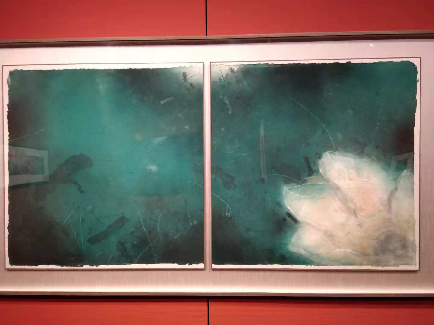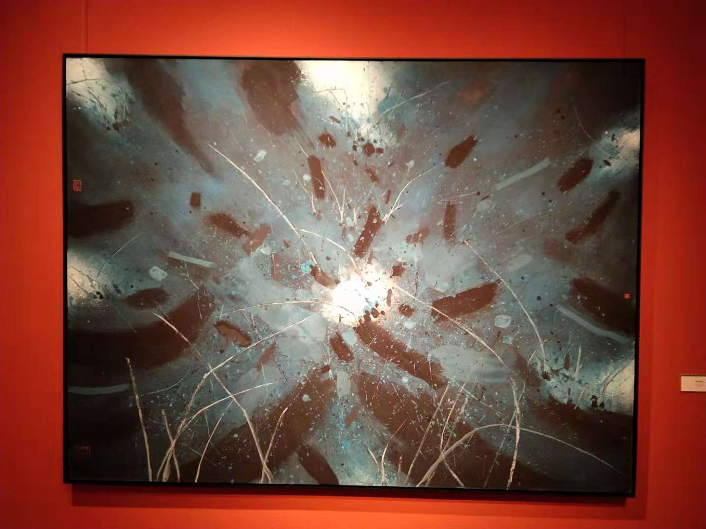 電梯上至二樓,走進展廳,一下子給人一種寧靜的視覺沖擊,畫靜靜地掛在墻上,觀眾也是靜靜地的看,輕輕的腳步聲也怕把一幅幅畫吵醒,春濤的畫就是這樣,作品里放進了許多現代元素,他的畫是中國的,他的作品又是國際的。