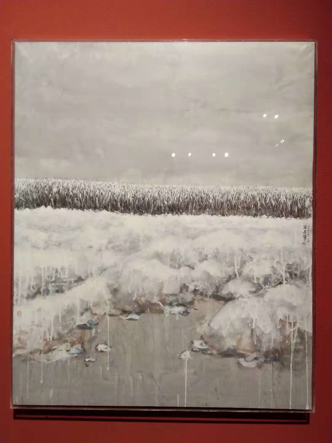 春濤的荷塘是四季的,大部分文人墨客贊美夏天的荷塘,自古以來,小荷才露尖尖角,早有蜻蜓立上頭。還有接天蓮葉無窮碧,映日荷花別樣紅,都是描寫夏日荷花,春濤荷塘里描繪了許多秋天和冬天,他的荷塘有另外一種美,他把冬天的荷塘反應在作品里面,他的畫是那么的純潔,富有藝術的生命力。