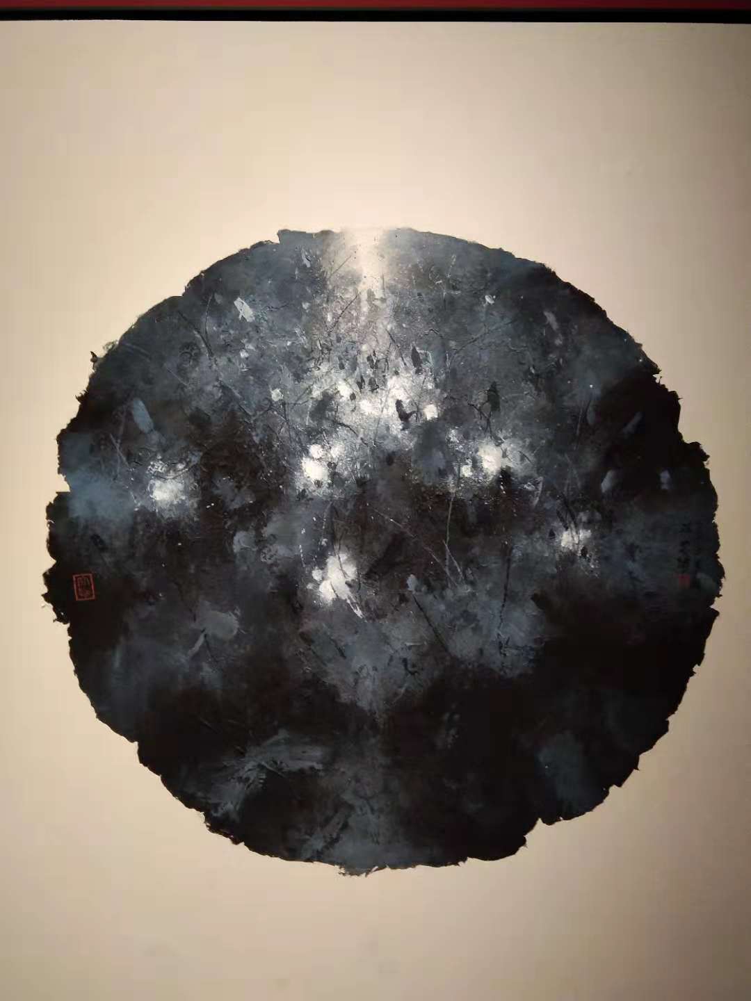 春濤,他把作品畫在不同的材料上,他用手工皮紙,不規則的邊,皮紙里粗糙的雜草,正好是畫家需要表現的機理效果,加上畫家無限的想象力,完美筆墨與畫家的思想結合在一起。
