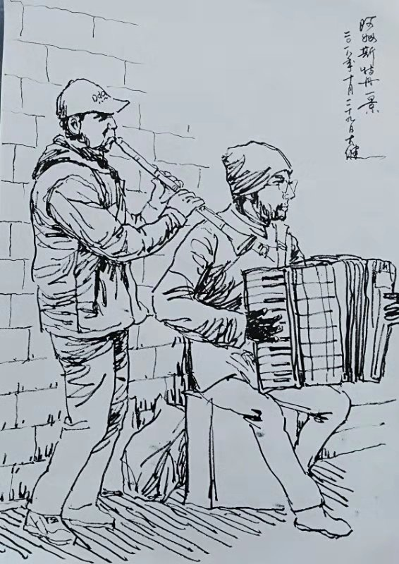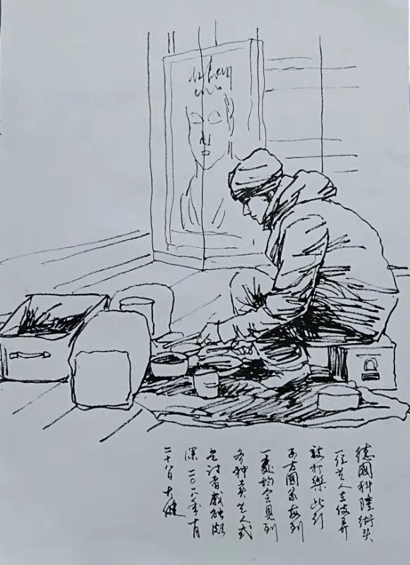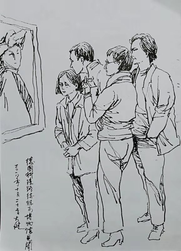 大健還不忘在旅途中忙中偷閑,為外國友人畫人物速寫并予以一一贈送,為中國文化的傳播作出了積極的貢獻。