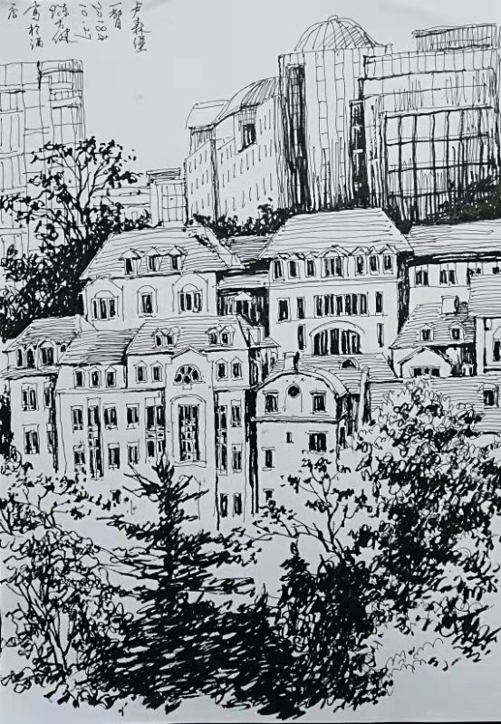 而有一天,大健還是來畫畫,談笑卻聽不到了。模特擺好姿勢,他還是拿起筆,但手中的筆似乎不那么聽使喚了。休息時,他坐在椅子上,不說一句話,有時低頭,打磕睡。下午,他畫完一幅畫就離開了畫室。畫友們陸陸續續地知道了他夫人生病住院的事。后來的每個星期六,他仍然來,但他會早回,因為要照顧生病的夫人和小孫子。這期間,他消瘦了許多,但他從未放棄過手中的畫筆。我還是會源源不斷地從他的微信中看到他的新作,他病愈中的夫人還會把他的畫制做成精美可播放的小年糕影集。