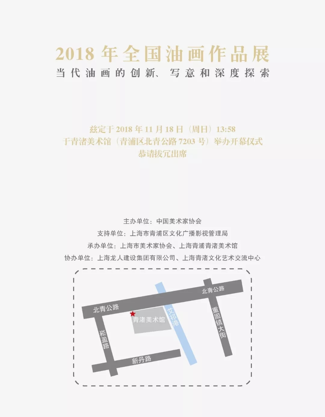 由中國美術家協會主辦,中國文聯美術藝術中心、上海市美術家協會、上海青浦青渚美術館承辦,上海市青浦區文化廣播影視管理局支持,上海龍人建設集團有限公司、上海青渚文化藝術交流中心協辦的“2018年全國油畫作品展”在上海青浦青渚美術館如期開幕了。展覽旨在為當代美術家在繪畫藝術追求中建立一個以創新精神、寫意精神和深度探索為宗旨的學術平臺,倡導美術工作者充分發揮個人的創造力和創新性精神,以新時代、新生活為根本,努力創作出不負時代的精品力作。