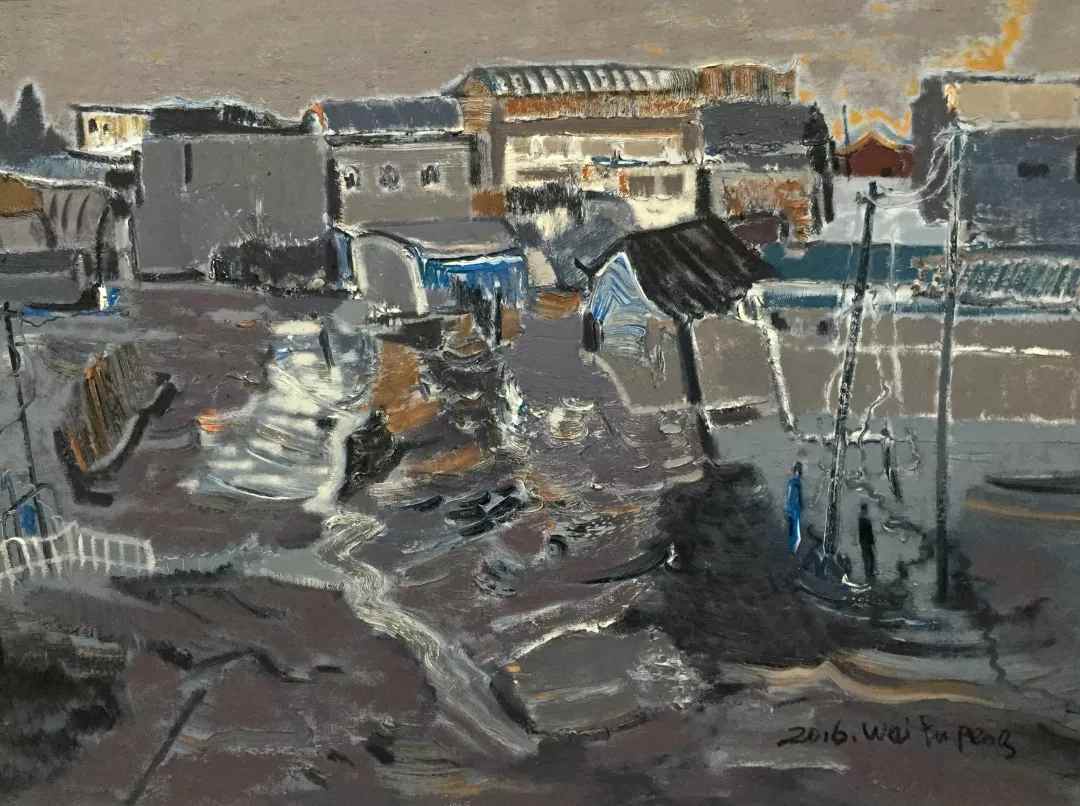 畫家要表現(xiàn)的應(yīng)該是自己內(nèi)心最柔軟的、最不愿輕易去碰觸的內(nèi)容,用自然而然的、最不瀟灑的筆觸表達(dá)出來,使內(nèi)容、形式、境界巧合而成。韋宇朋的作品讓觀者感受到了這種巧合,這種巧合不是刻意、偶然、強(qiáng)求的,而是花了時(shí)間、下了功夫、積累沉淀的結(jié)果。他用西方的材質(zhì)和形式,東方的語(yǔ)言和題材,將真實(shí)與想象的時(shí)間流逝和人類活動(dòng)的印象,不漏痕跡的表達(dá)出了自己的觀點(diǎn)和情感的歸宿。