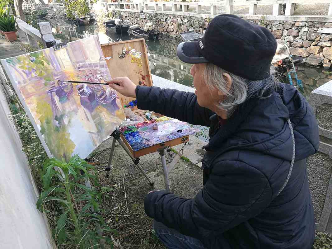 這次寫生我是唯一畫中國畫的,去年來寫生過,沒有盡興,今天隨油畫圈的朋友再來。