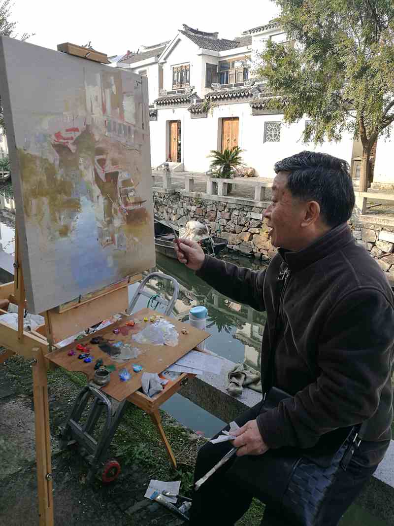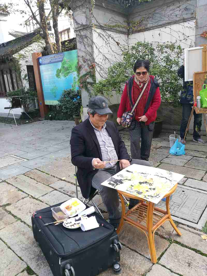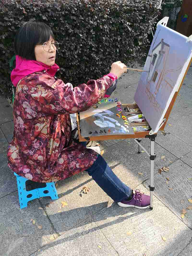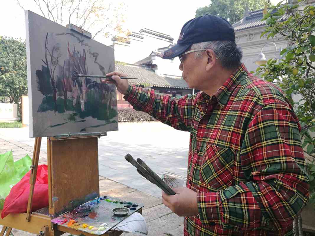 23日上午,大家早早地驅(qū)車來到東山的雕花樓,我是中午到的,隋軍、曹怡等畫家在雕花樓前銀杏樹下的第一幅寫生作品已經(jīng)差不多結(jié)束了。