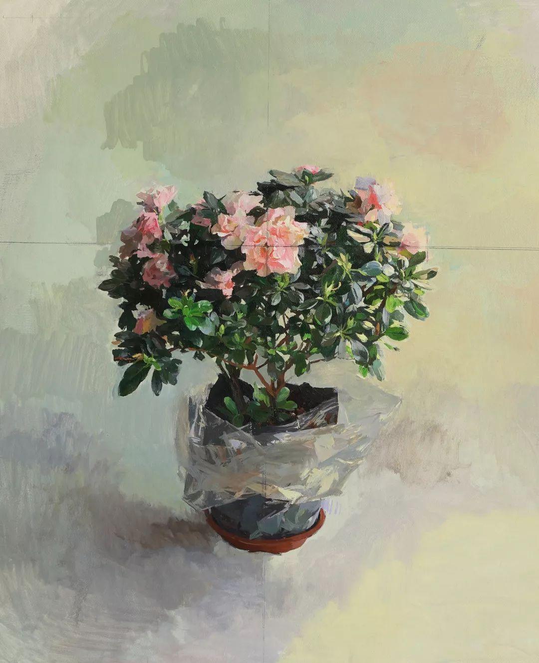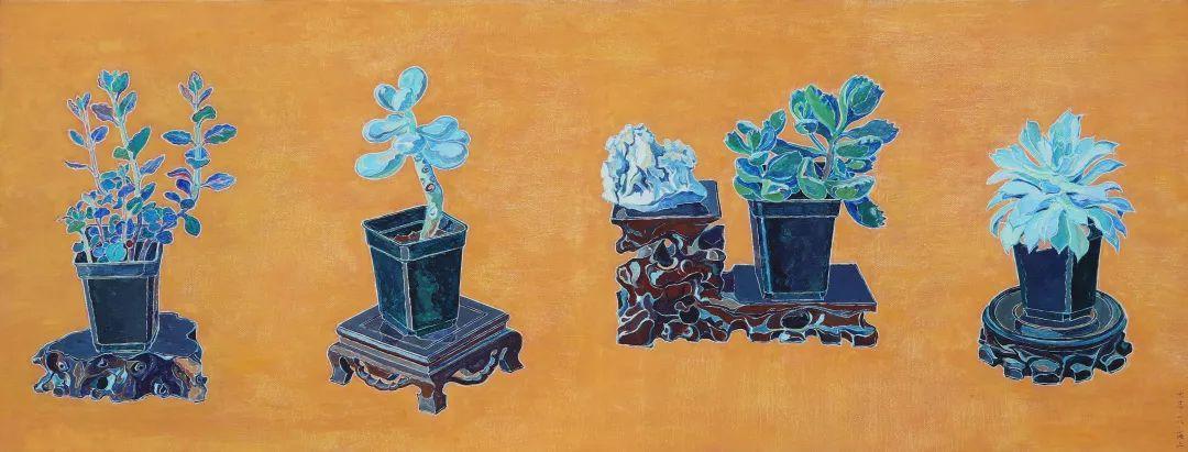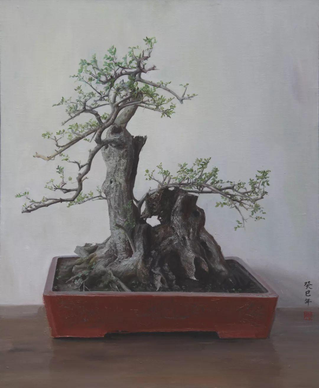 曹煒,盆景,白蠟布面油畫,50x60cm,2016