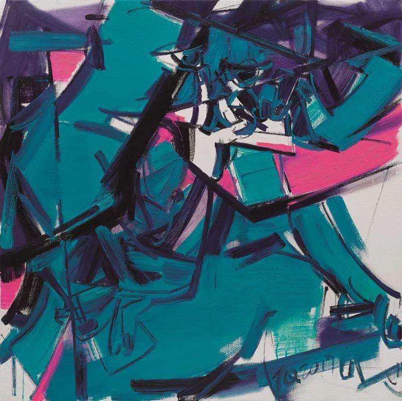 唐倩,玩牌者,布面油畫,95×95cm,2017