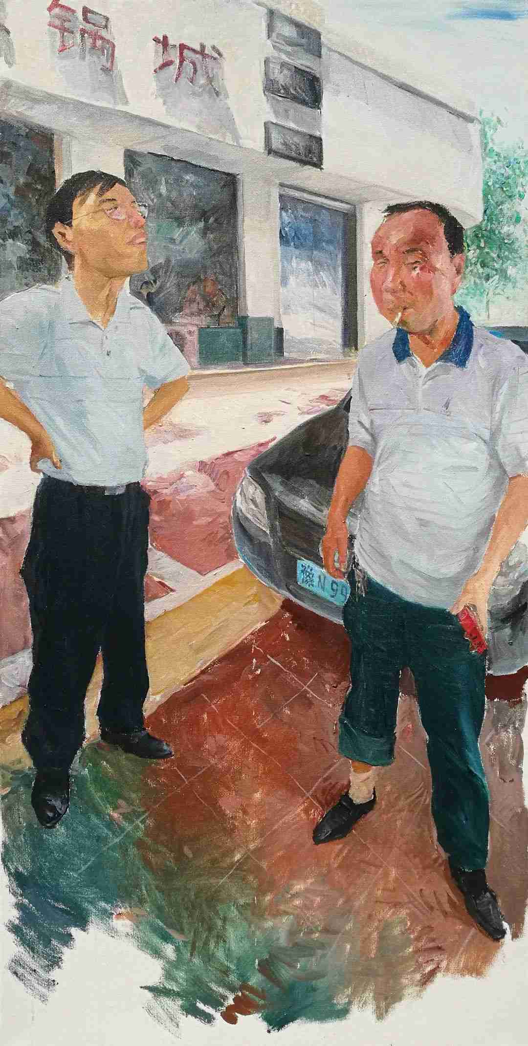 吳曉申,二個河南人之飯局后,布面油畫,200×100cm,2017