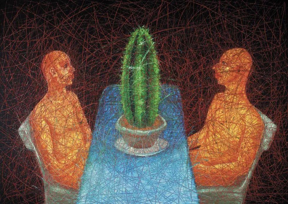 張健,倆個陌生人,布面油畫,100×140cm,2017