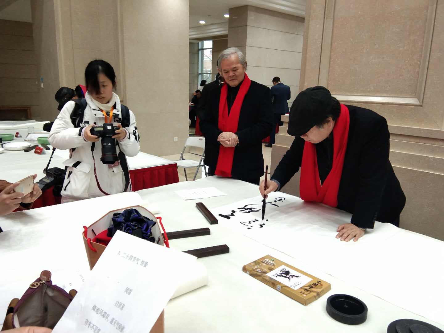上海市文聯專職副主席韓陳青、著名書法家劉小晴、市書法家協會主席丁申陽、市書法家協會副主席兼秘書長潘善助、張衛東、田文惠。上海市美術家協會副主席陳琪、丁設親臨現場。