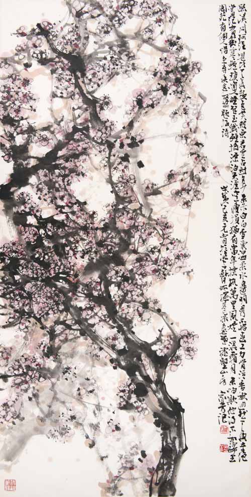 “綴雪融酥”2019上海名家梅花書畫作品邀請展,在中共虹口區委宣傳部、上海市美術家協會中國畫藝委會的指導下,這次畫展從寫生到創作,然后順利展出,首先得到的虹口區文聯的支持,在奉賢區文旅局、崇明區文旅局、虹口區文旅局的關心下,在各個地方順利展出,這次活動在上海市美術家協會花鳥畫藝術沙龍的組織下,得到的廣大書畫家的支持與參于,使得畫展成功舉行,三月十四日,幾萬株梅花在上海海灣國家森林公園綻放,書畫展就在唐梅廳畫廊展出,來自市區的畫家和藝術愛好者,一起參加了開幕式。