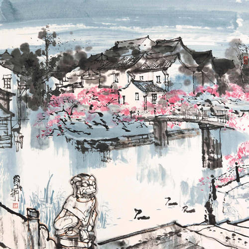 在上海市美術家協會中國畫藝委會、上海市虹口區文學藝術界聯合會的指導下,由青村鎮人民政府、上海美協花鳥畫藝術沙龍主辦,海派文化中心承辦的“世外桃源,遇見青溪”青村老街,吳房村桃花主題中國畫作品展,于六月六日下午兩點鐘開幕,展覽時間到六月十二日。