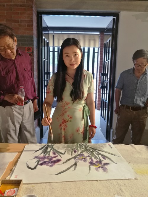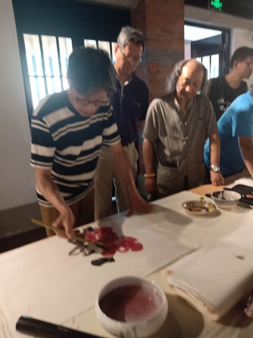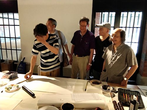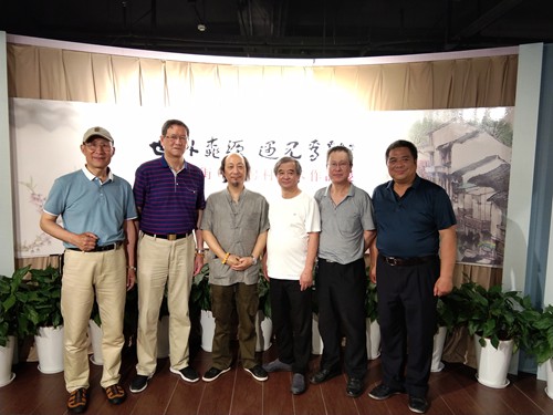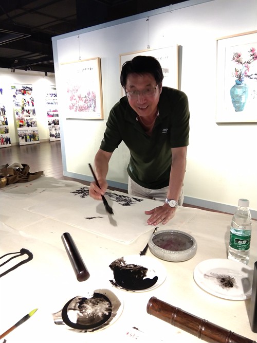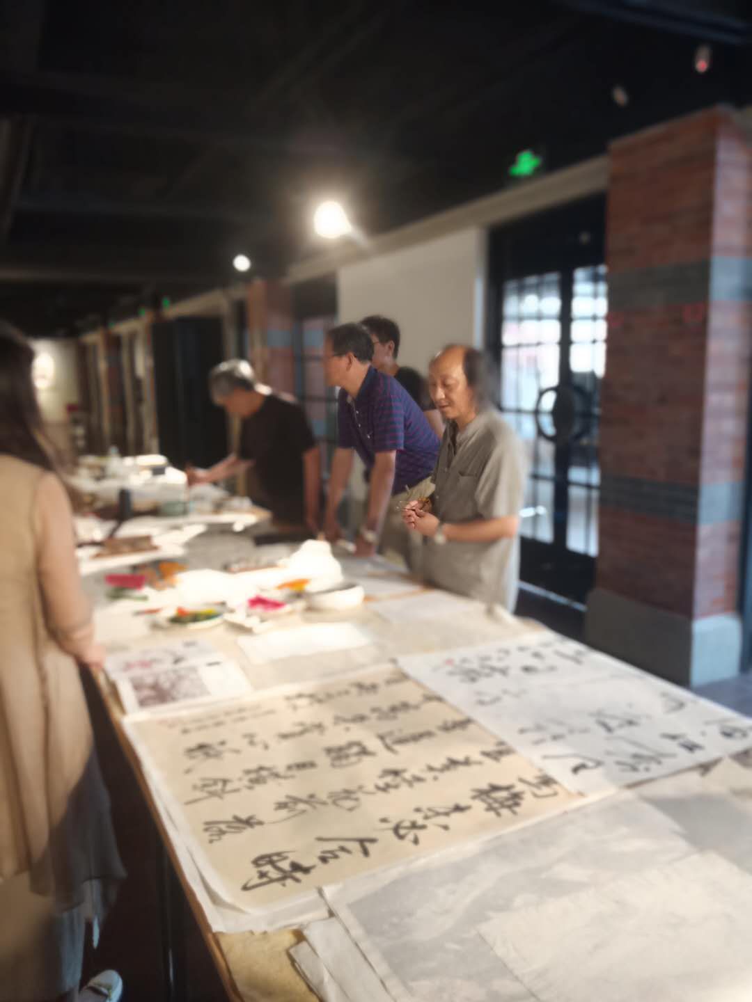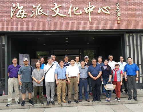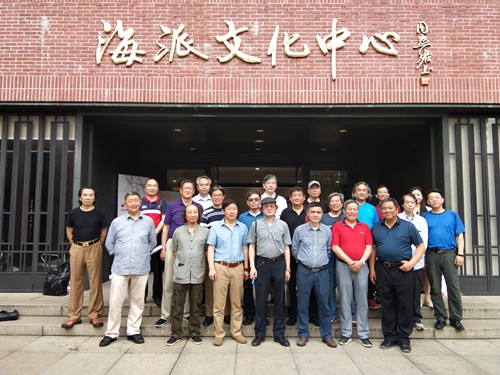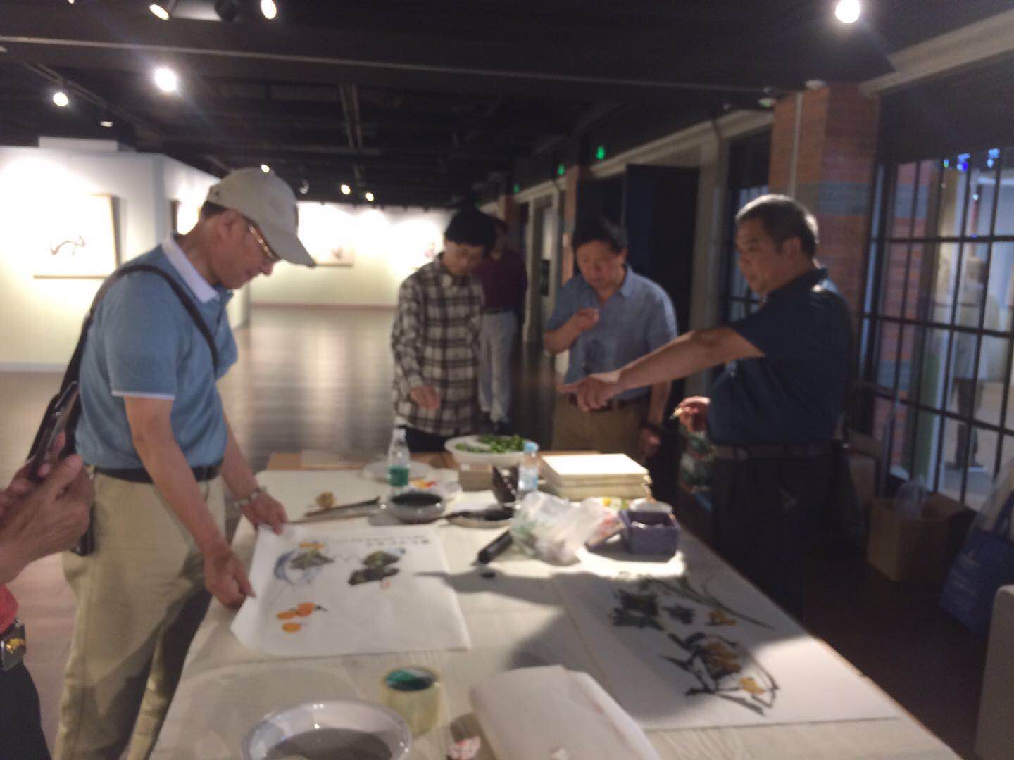 于六月六日下午兩點鐘在海派文化中心開幕,這次畫展 由青村鎮人民政府和上海美協花鳥畫藝術沙龍主辦,海派文化中心承辦,這次畫展不搞開幕式,參展畫家和美術愛好者歡聚一堂,揮毫潑墨,藝術交流,藝術氛圍濃濃。由于沒有開幕式,大家來來往往,拍了許多合影。