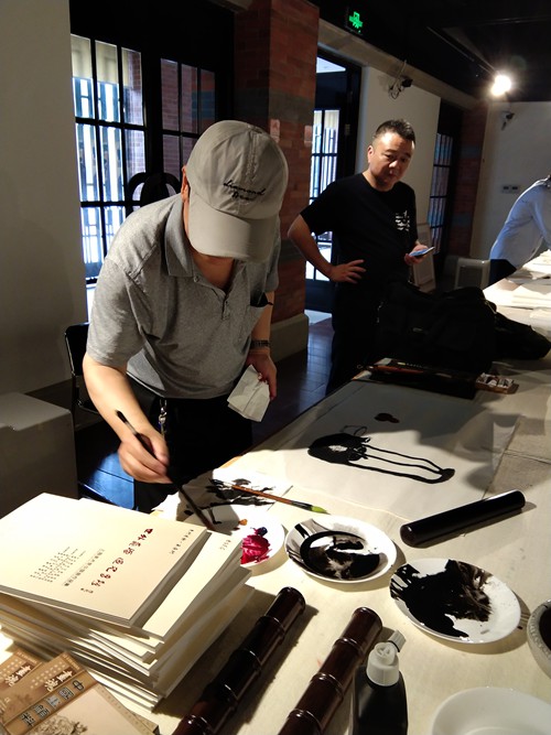 沙龍負責人余仁杰、夏建峰和余石,三個人早早的就來到海派文化中心,參加今天活動的還有王海頻、花青、王鵬、紀康金、張學文、嚴榮鎮、顧孝華、樓文青、潘建民、薛春華和宋仁濤。著名策展人汪東東,以及許許多多藝術愛好者。