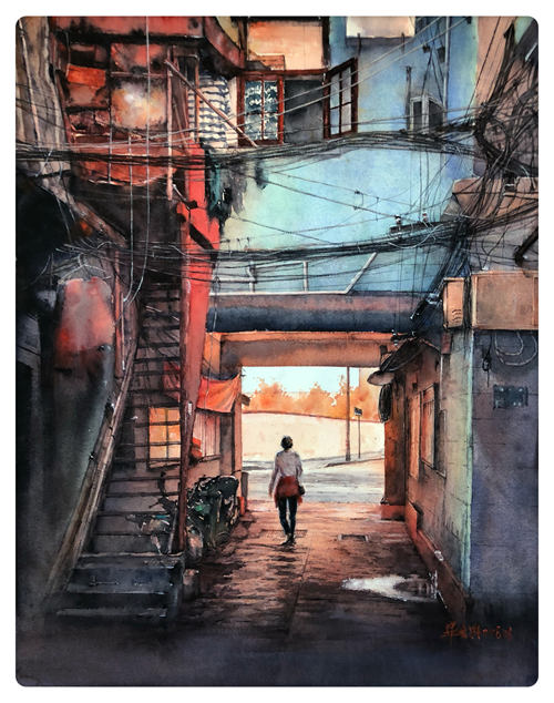 2016年入選上海市水彩畫作品展 , 作品名《小巷深處》;