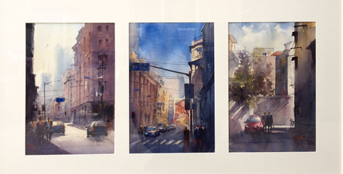 2018年入選上海市水彩畫作品展, 作品名《上海街景》;