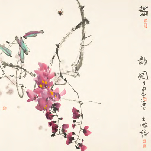 書法早年喜作篆隸,偶取簡牘筆意;國畫初學(xué)人物后轉(zhuǎn)學(xué)花鳥,取海上任伯年。上世紀末以寫意筆法入工筆,喜以純色作作重彩。近年師事方增先先生學(xué)筆墨寫意。