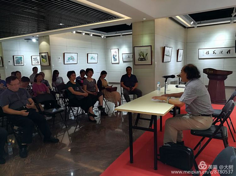 本次主講為著名花鳥畫家應鶴光先生,《海派書畫的傳承》。我與畫友從上海的四面八方,不畏“玲玲”的肆虐,相約而來,歡聚一堂。