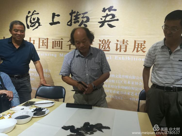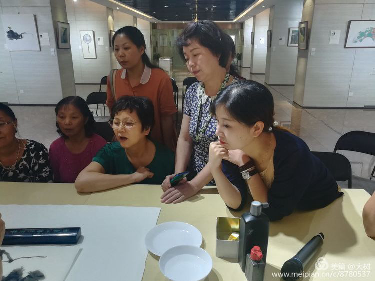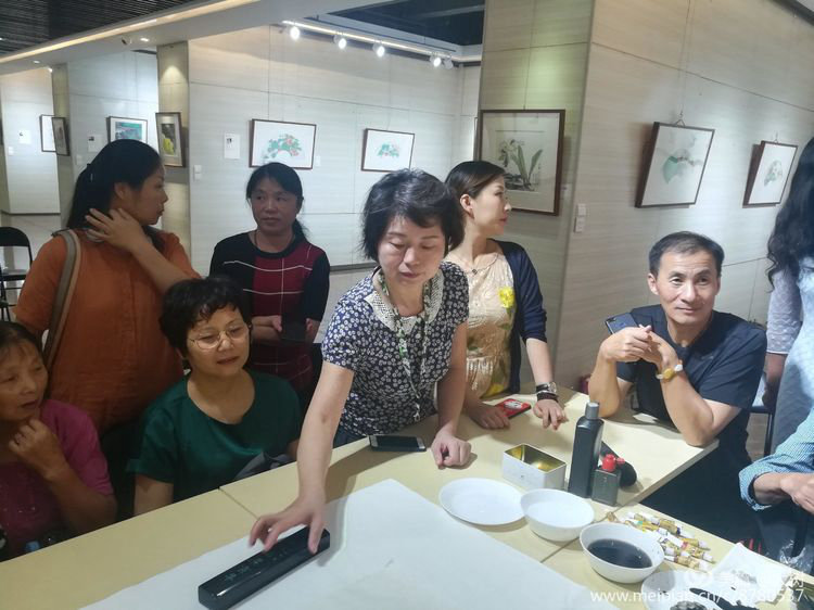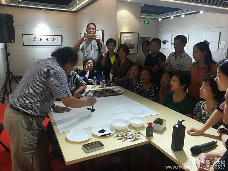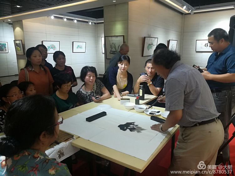 演講結束,應鶴光先生與畫友進行互動并作了花鳥畫技法示范。