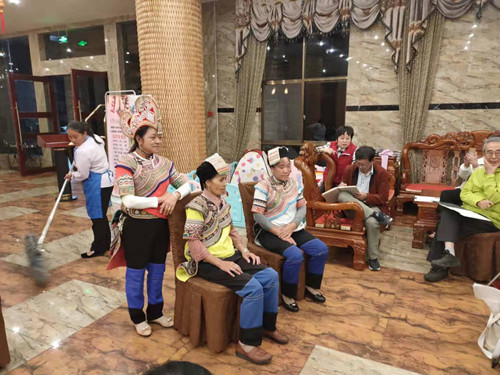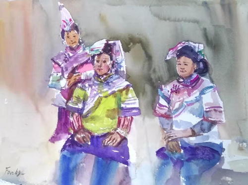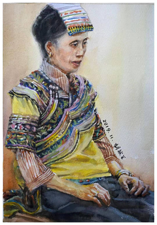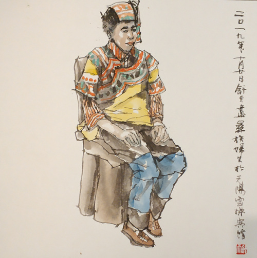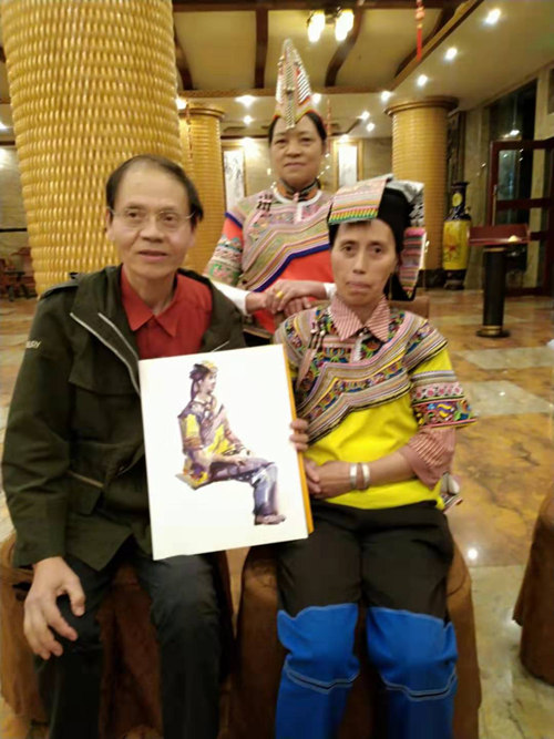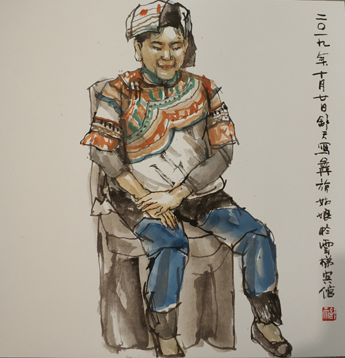 畫家們不顧一天寫生的疲勞,晚飯以后就寫生人物了,這些哈呢族模特,都是酒店餐飲部周經理幫我請來的。