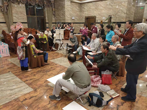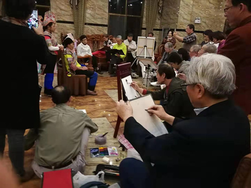 這次云南采風的畫家層次比較高,畫種比較全,有水彩畫、油畫、版畫和中國畫。