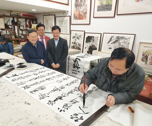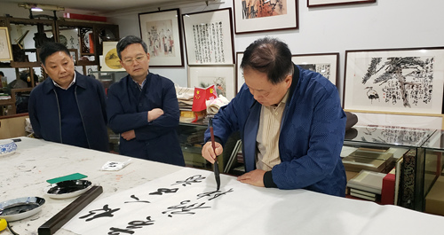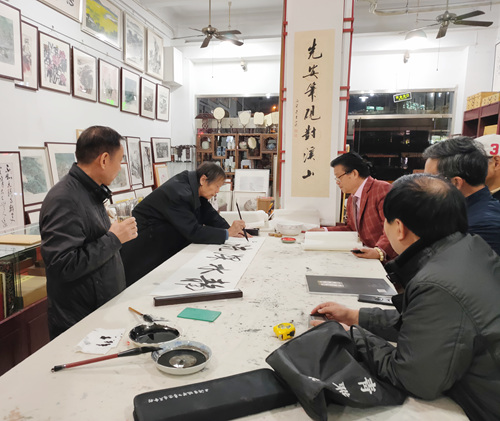 上海警備區孫進將軍、安徽省駐滬辦主任劉衛東 、上海市安徽經濟文化促進會會長劉漣清(原上海鐵路局局長)、上海中船陽光集團黨委書記魏學樸、安徽黃梅戲表演家楊舒星、在上海聚福堂與海派著名書畫家車鵬飛、戴小京、陳琪、張偉生、汪家芳、湯其根、孫楊、徐志良等老師在聚福堂雅集,交流探討書畫藝術,書畫家們當場提筆揮毫,使活動達到高潮。