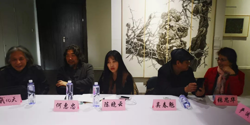 王秘書長向現場來賓一一介紹了受邀藝術家,他們是上海美術家協會副主席陳琪先生、上海美術家協會副主席、上海美術學院藝術研究院院長楊劍平先生、上海美術家協會副主席李磊先生、上海書法家協會副主席徐慶華先生,上海美術家協會副秘書長丁設先生、上海美術家協會顧問周長江先生、上海美術家協會中國畫藝委會副主任,上海美術學院水墨緣工作室主任張培楚先生,上海美術學院副院長李超先生,上海美術家協會常務理事、中國畫院創作室主任何曦先生,上海美術學院中國畫系副教授白瓔先生、上海美術學院客座教授施忠平先生。旅居意大利藝術家鄭蓉女士。向參加開幕式的部分受邀藝術家和來賓表示熱烈的歡迎,受邀藝術家代表陳琪、李磊、張培楚,著名藝術批評家吳亮等對上海當代水墨畫會積極參與上海的文化建設,大膽探索水墨的當代性命題的辦會定位和努力方向給予了高度的肯定。