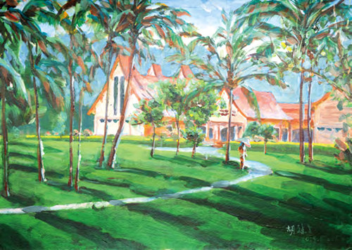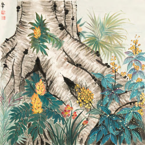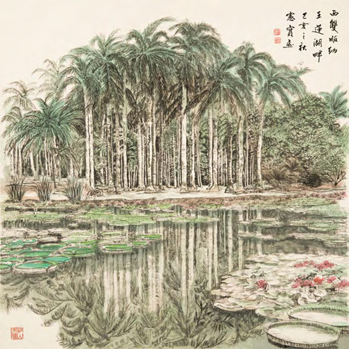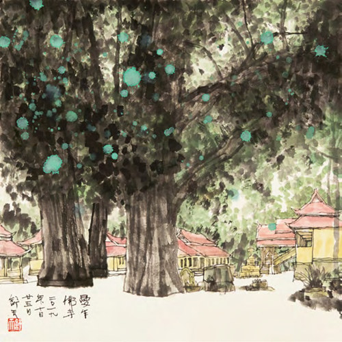陳慧《云南曼聽公園白塔下龍吐珠》
