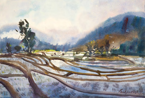 2019年10月,由美術家書法家藝術網組團的上海畫家采風團,進行了為期13天的云南寫生活動。從元陽萬畝梯田到哈尼族蘑菇房村寨,從西雙版納熱帶雨林到橄欖壩傣族風情,從孟連愛伲族芒舊新寨到曼聽公園白塔、野象谷,從普洱那柯里茶馬古道到昆明石林奇觀,大家被多姿多彩的云南風土人情所吸引,不管是畫中國畫的還是畫油畫、水彩畫、版畫的,年事已高的畫家激情不減,年輕的畫家更是勤奮不懈,畫筆不停,照相不停。云南歸來后,經過整理再創作,30 位畫家拿出了 60 余幅精品力作參展,今天與觀眾見面。這是藝術交流,也是向上海父老鄉親的匯報,為春節增添一點書卷氣吧。