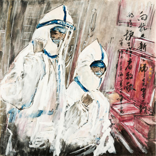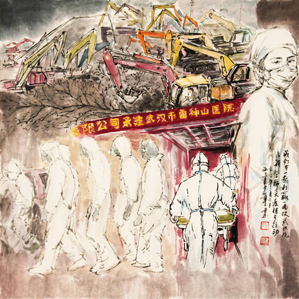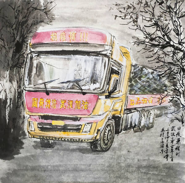 夏建峰和全國的畫家一樣,宅在家里,根據新聞圖片,創作了許多抗疫情的美術作品,來歌頌廣大醫務工作者、人民解放軍,以及廣大志愿者在共產黨的領導下,戰勝疫情的可歌可泣的故事。