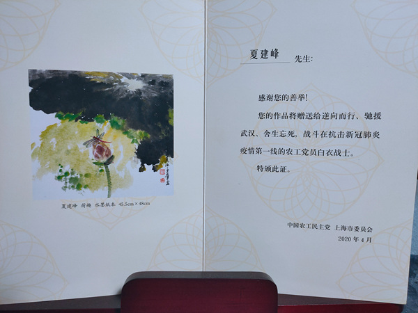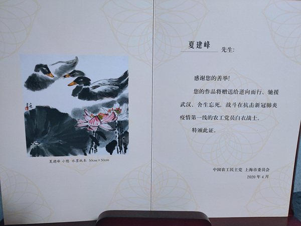 二月底,在農工黨上海市委會秘書長王曉東同志的倡議下,夏建峰和農工黨上海書畫院院長陸春濤、書畫院秘書長倪煊標一起商量。決定由我們農工黨上海書畫院的畫家為我們農工黨的醫務工作者創作一些書畫作品,讓我們援鄂的英雄們在凱旋歸來的時候,作為禮品,贈送給當代最可愛的人。