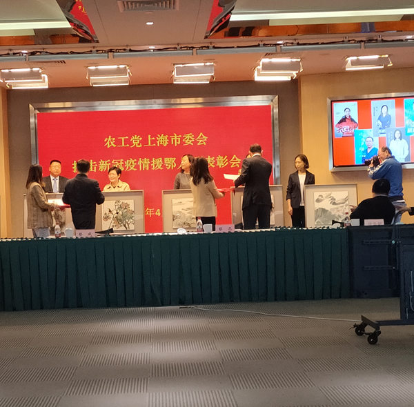 四月二十八日下午兩點鐘,農工黨上海市委在陜西北路民主黨大廈六樓會議室舉辦“抗擊新冠疫情援鄂醫務工作者表彰大會”以及書畫捐贈儀式。