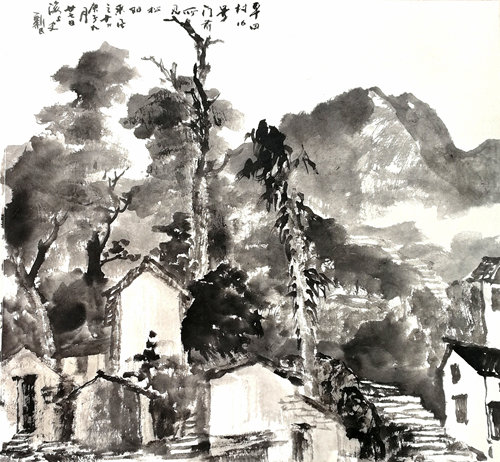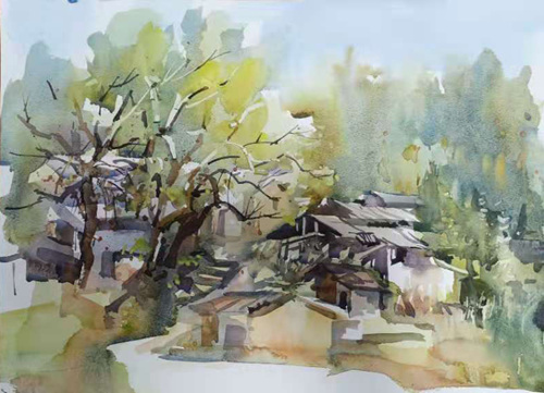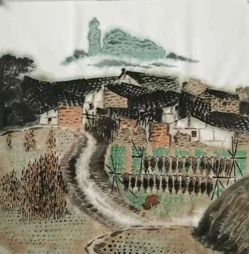 夏建峰寫生作品《平嶺村頭》50×50cm