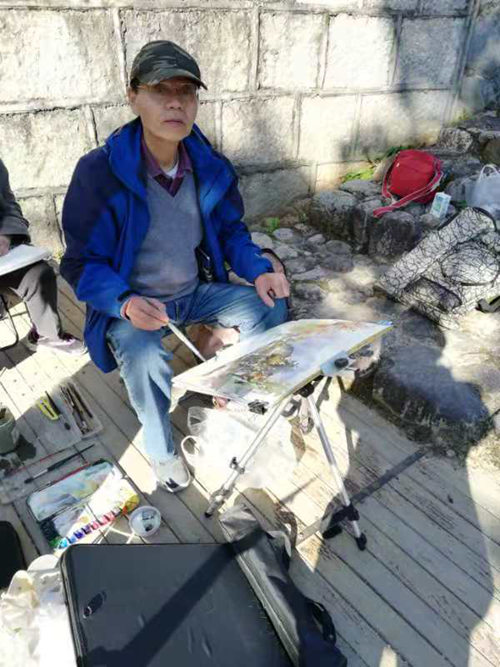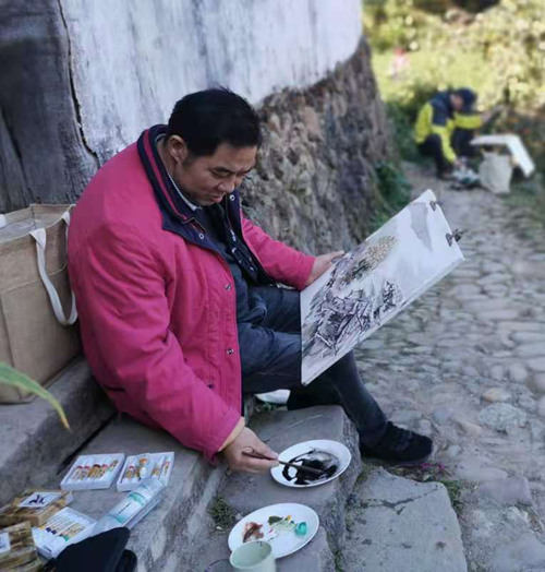 建峰相識經年,老鄉加畫友。上海開著體面的印刷廠,畫著畫辦著展,一有空便來麗水寫生,畫鄉“交關靈”的綠水青山讓他樂此不疲。前幾天和國強老師領了滬上二十余位資深加著名的畫家往畫鄉殺奔而來……
