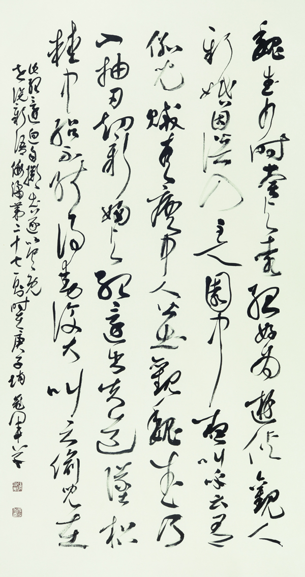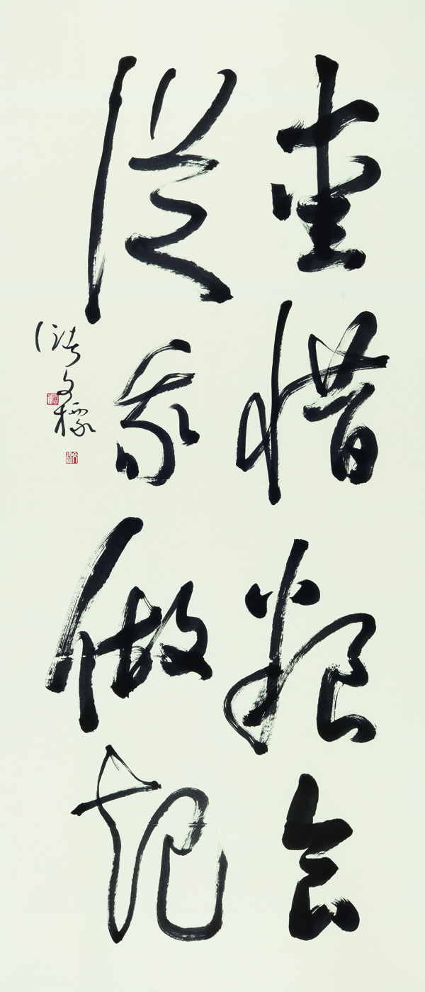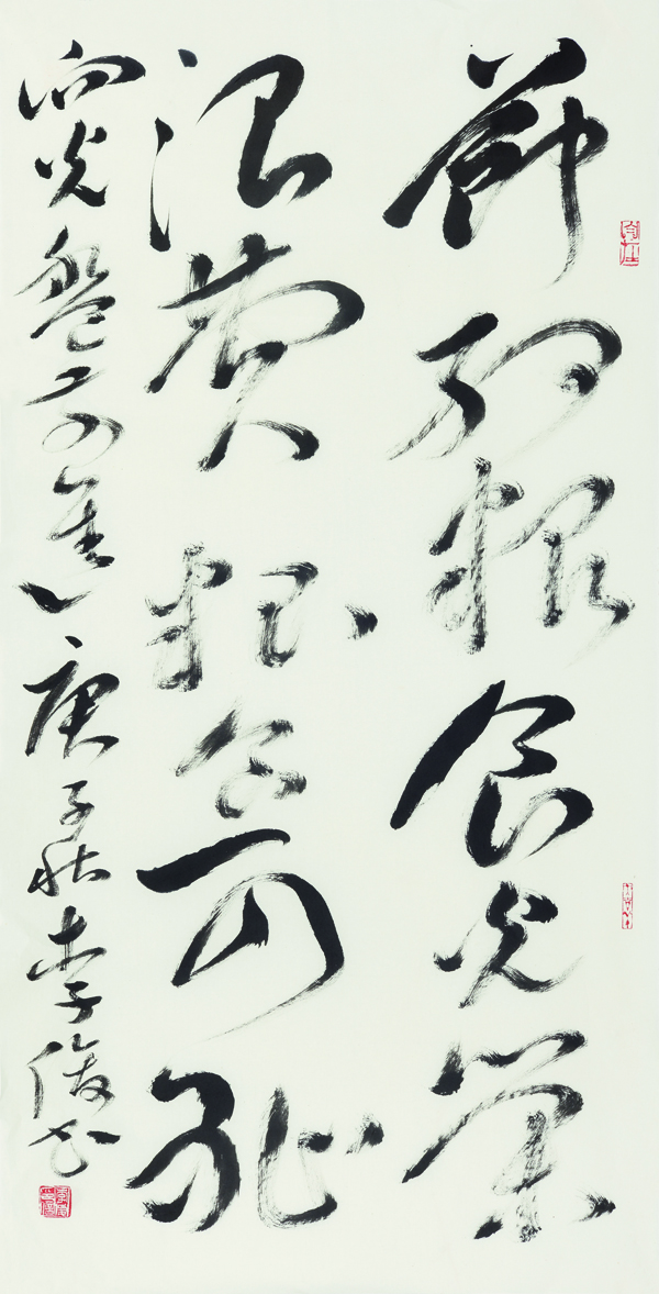草書(shū)的偉大在于用單純簡(jiǎn)潔的線條點(diǎn)畫來(lái)表現(xiàn)作者的心性情緒,讓人產(chǎn)生心理共鳴和美的享受。上海市書(shū)法家協(xié)會(huì)第七屆草書(shū)專業(yè)委員會(huì)共17人,他們長(zhǎng)期在學(xué)習(xí)研究草書(shū)上孜孜不倦、積極探索,今天集體登臺(tái)亮相,每人展出5幅作品,目的在于聽(tīng)取方家和觀眾批評(píng),弘道養(yǎng)正,繼續(xù)前進(jìn)。上海市書(shū)法家協(xié)會(huì)主席團(tuán)成員每人一件特邀作品,無(wú)疑為這次展覽增強(qiáng)了光彩。