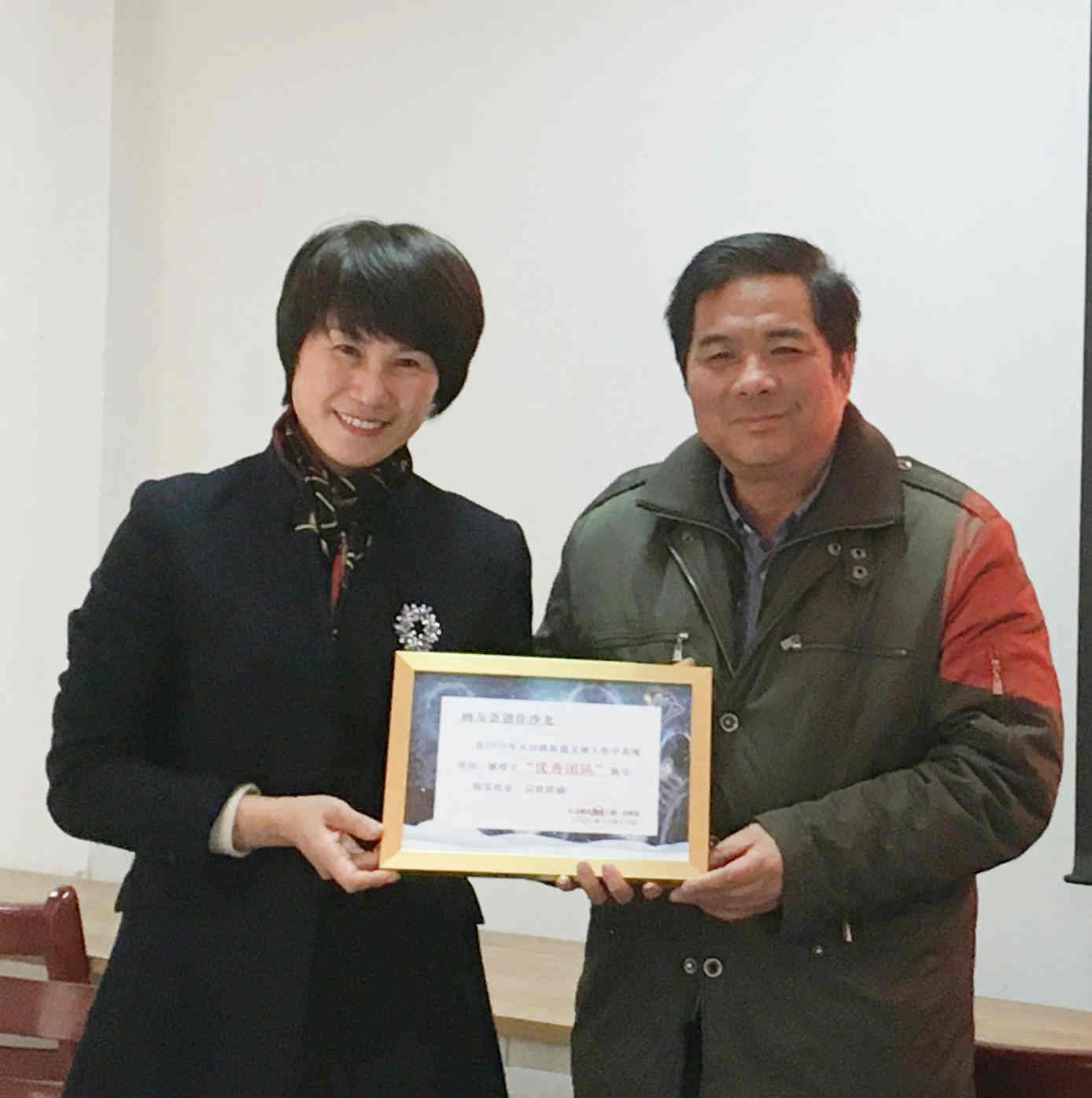周榮主任頒發由天山街道授予畫友薈創作沙龍“優秀團隊”的榮譽證書。夏建峰代表沙龍接受了證書。