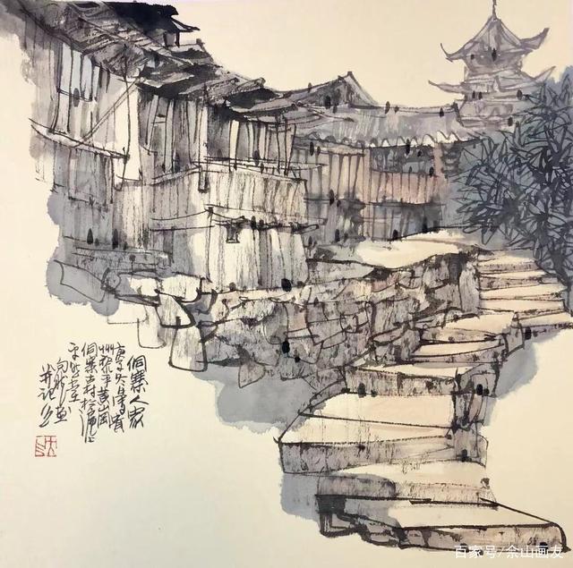 沈向然中國畫作品《黎平黃崗古寨之二》