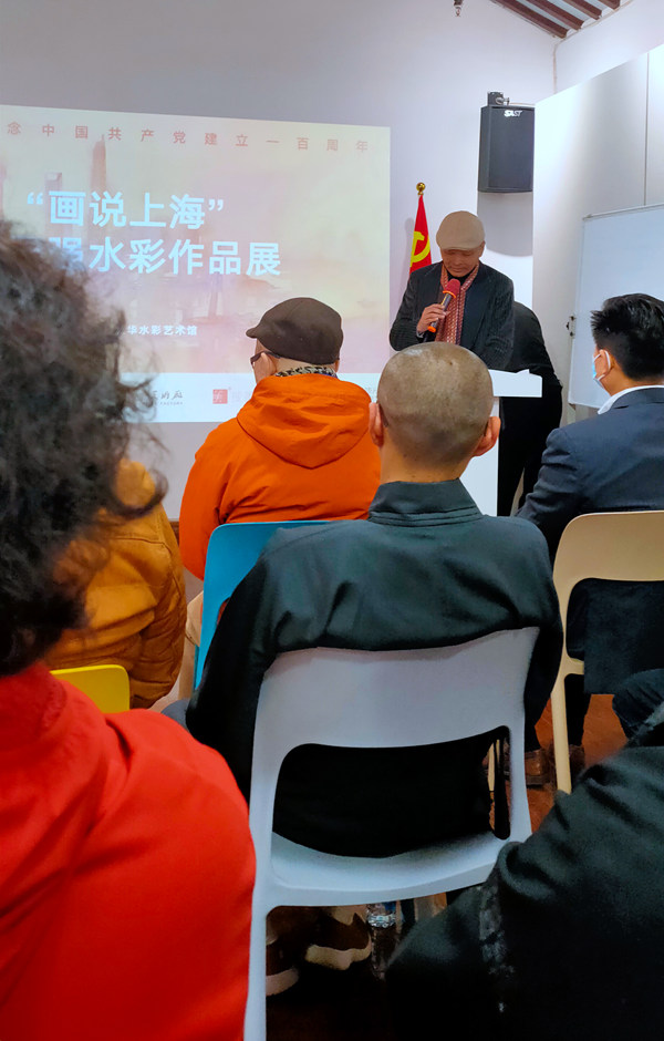 全華水彩藝術館執行館長楊見鈞先生對武國強先生這次的畫展做了介紹,再一次述說了武老師老師的水彩畫作品反應了上海的城市變化,和老上海建筑的情懷。在建黨100周年之際,這個畫展具有更重要的意義。