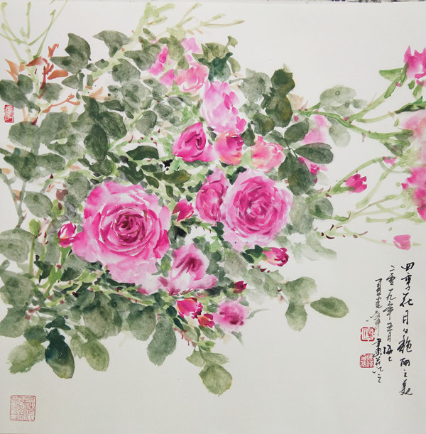 作品“菜花韻”入選第七界上海美術大展,作品“四月國花”入選2017全國中國畫大展