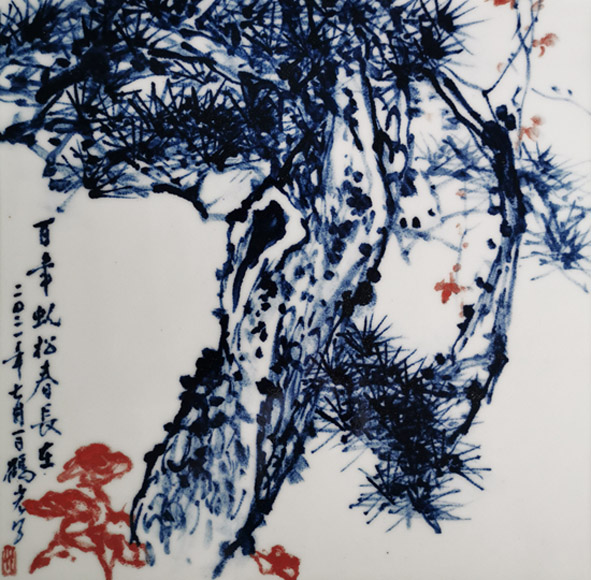 應鶴光 百年虬松春長青(瓷板畫) 40×40cm