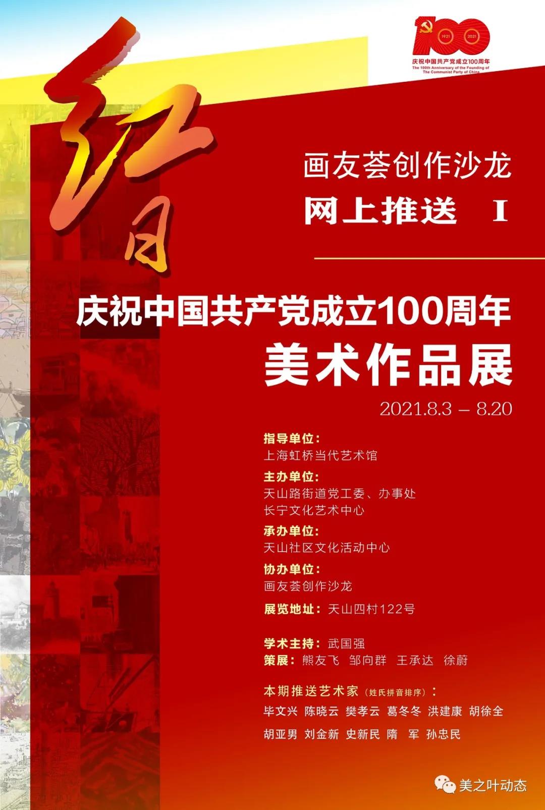 在中國共產黨成立100周年之際,由天山路街道黨工委、辦事處、長寧文化藝術中心主辦,天山社區文化活動中心承辦,“畫友薈”創作沙龍協辦的《紅日——慶祝中國共產黨成立100周年美術作品展》將在天山社區文化中心一樓群藝展區拉開帷幕。