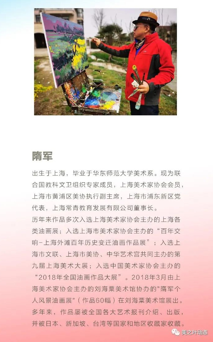本次兩期“紅日美術作品展”網上推送在大家的關心下業已完成。感謝天山路街道黨工委、辦事處、長寧文化藝術中心、天山社區文化活動中心、虹橋當代藝術館的鼎力支持、感謝周榮、武國強、熊友飛、鄒向群、夏建峰、王承達、夏雯等諸多幕后同僚的認同與參與, 我輩才疎識淺,萬望業界海涵。