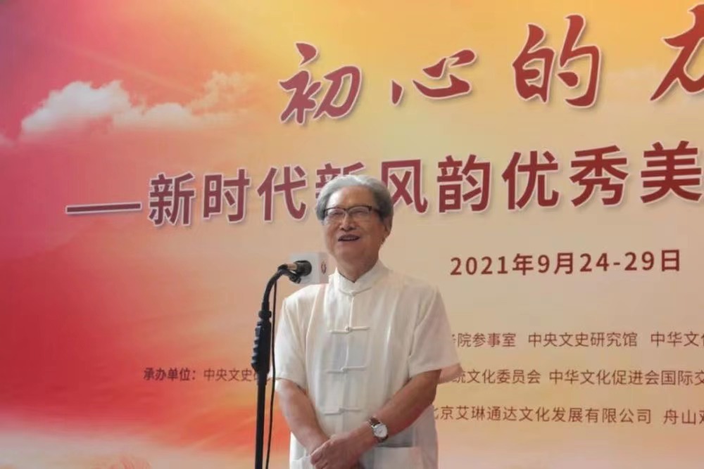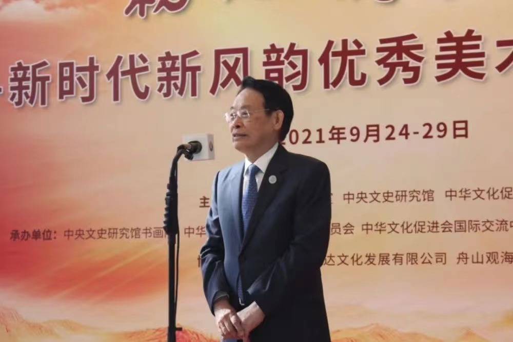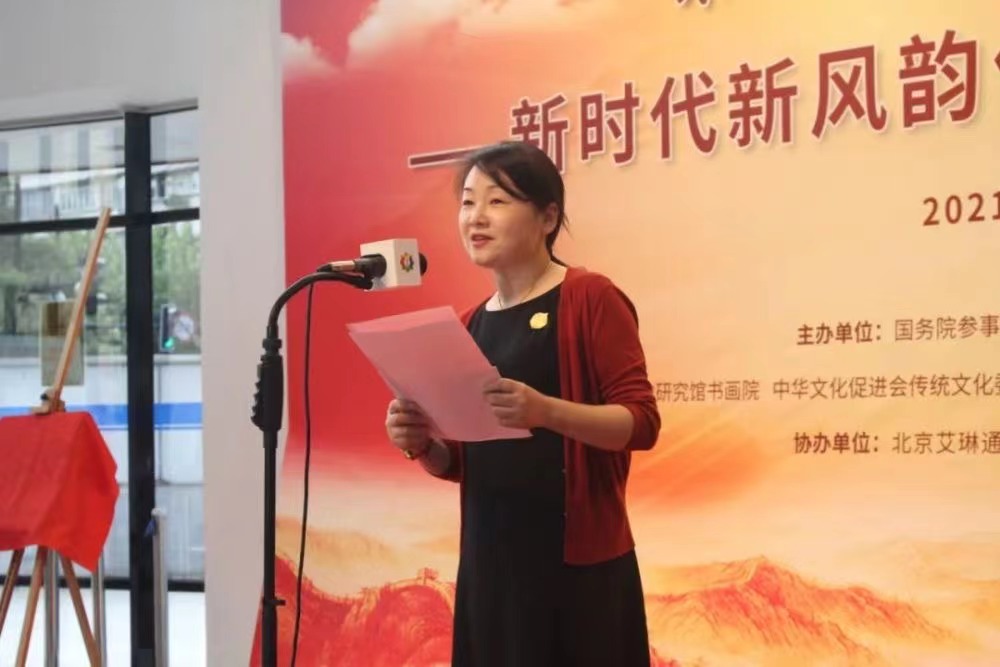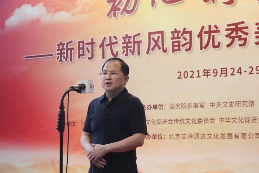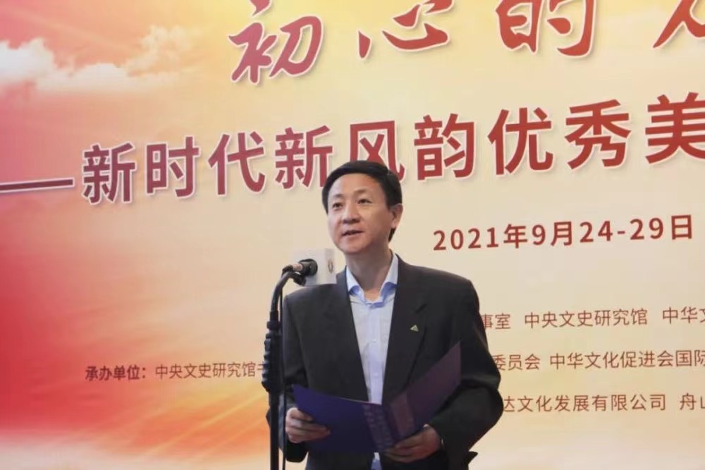 新時代新風(fēng)韻優(yōu)秀美術(shù)作品展組委會副主任陳倩致開幕辭