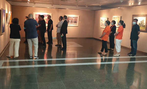 這次展覽,共展出105件作品,參展人數(shù)多,社會影響大,北京、上海和香港等地100多位海內(nèi)外藝術(shù)家參展。主題鮮明,形式多樣,藝術(shù)家運用國畫、油畫、版畫、雕塑、書法、水彩畫和當(dāng)代藝術(shù)等樣式,歌頌共產(chǎn)黨,歌頌祖國,贊美大江南北新風(fēng)貌新氣象。