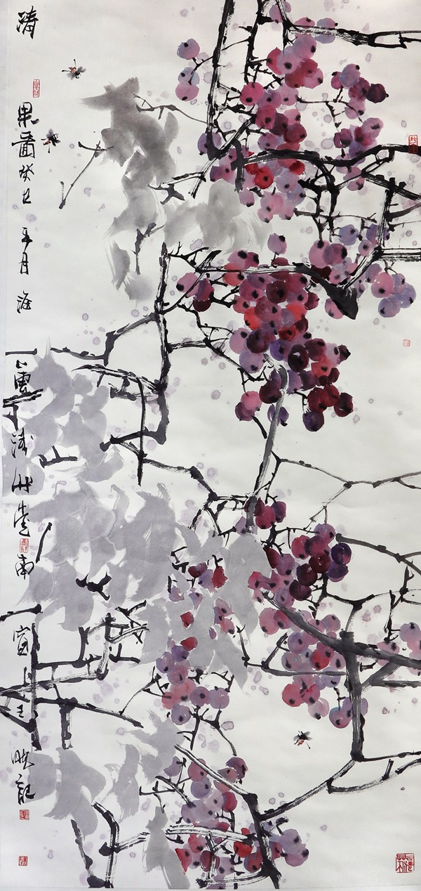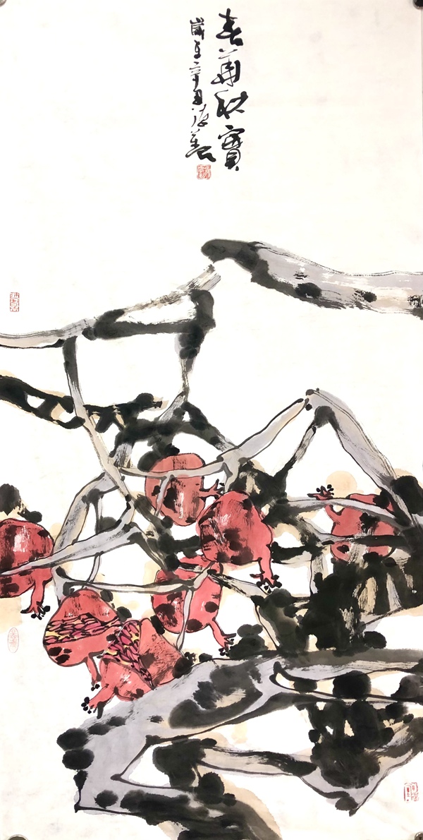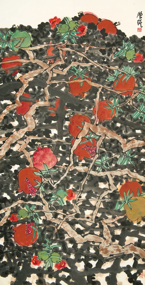 陳琪 秋風搖落石榴紅 138×70cm