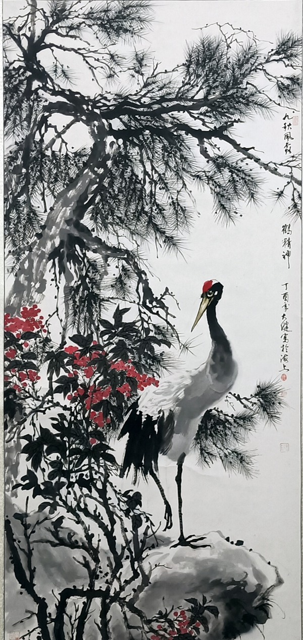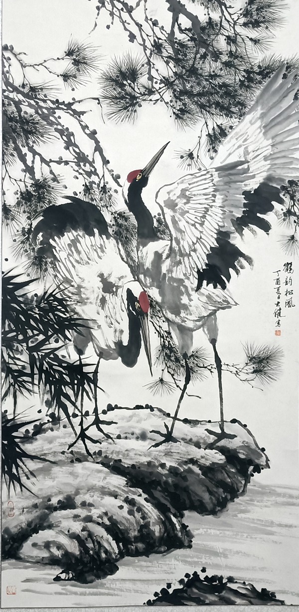 陳大健 鶴韻松風 139x69cm