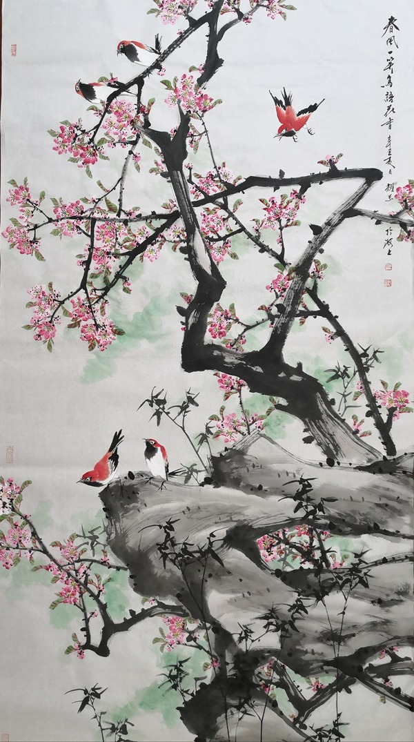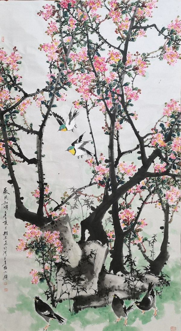 卞真 翠羽迎春 138x69cm